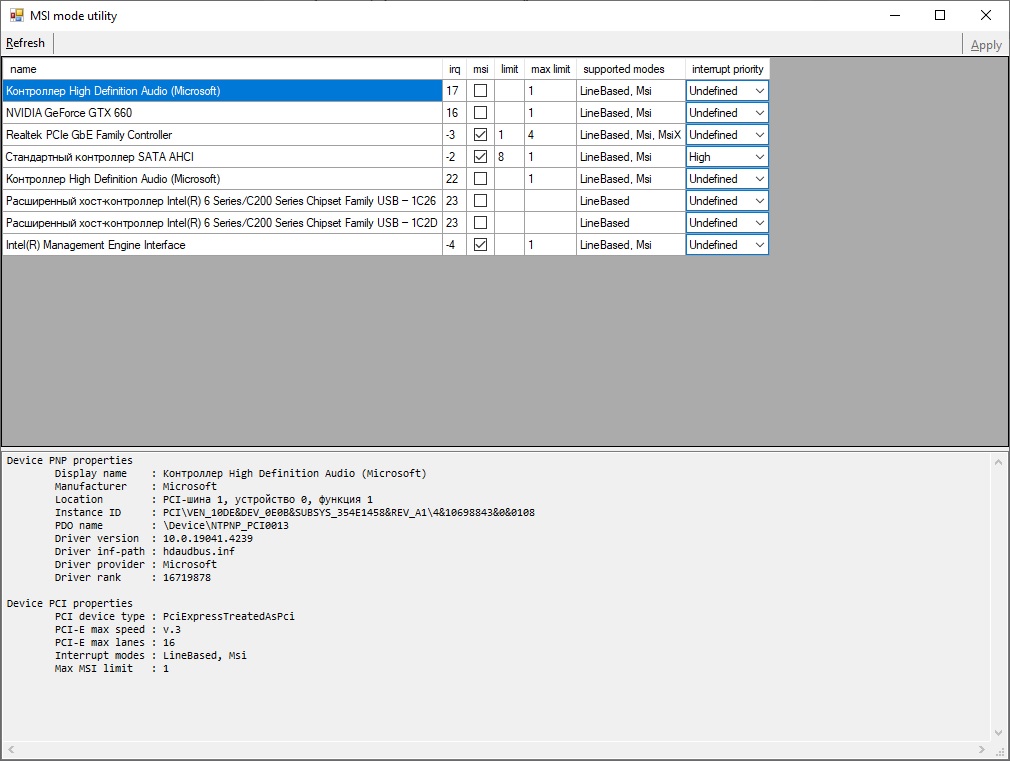 Драйвер должен уметь работать в этом режиме. В утилите MSI_util_v3 можно посмотреть совпадает ли у них irq, если да то переключить в MSI. Может не взлететь. Можно обо устройства перевести в MSI режим если драйвера позволят. Там всего 3 варианта, попробовать все. Если не поможет вернуть как было.
