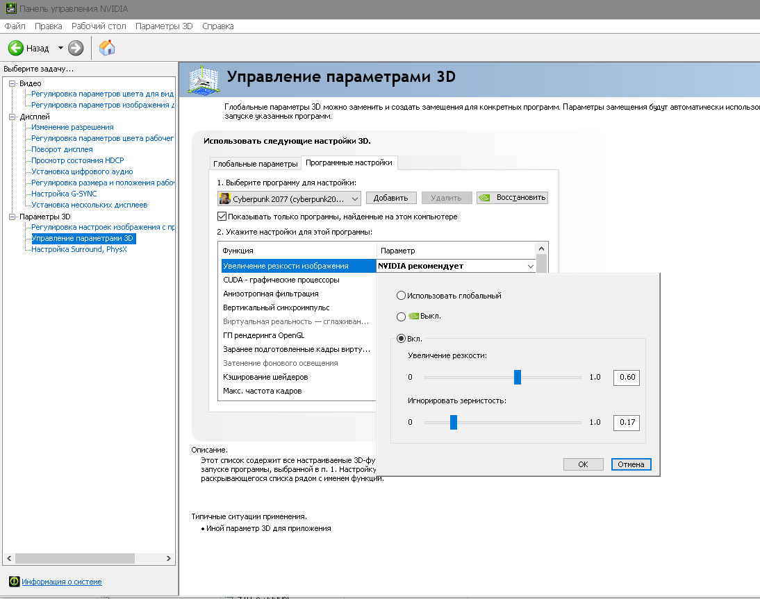 Мне раньше нравилось в Киберпанке через DSR ставить разрешение 2880*1620 + DLSS сбалансировано + через драйвер шарп на 0.6, получалась самая приятная глазу картинка. Теперь не работает