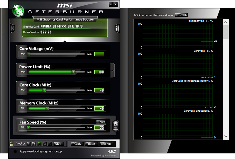 кстати кроме MSI AB (не пользуюсь) есть утилита для включения кулеров ВК на постоянку? чтоб перед игрой включил, поиграл - выключил?. а то с последним драйвером 522.25 дерготня на PA-GTX1070 GameRock. температура вроде не превышает порог включение 52-54°C, но вентиляторы ОЧЕНь часто включаются-выключается ( для самих вентиляторов не есть хорошо). на 512.95 не было такой дерготни вентиляторов. или выключены 52-54°C, или включены 55°C и выше.