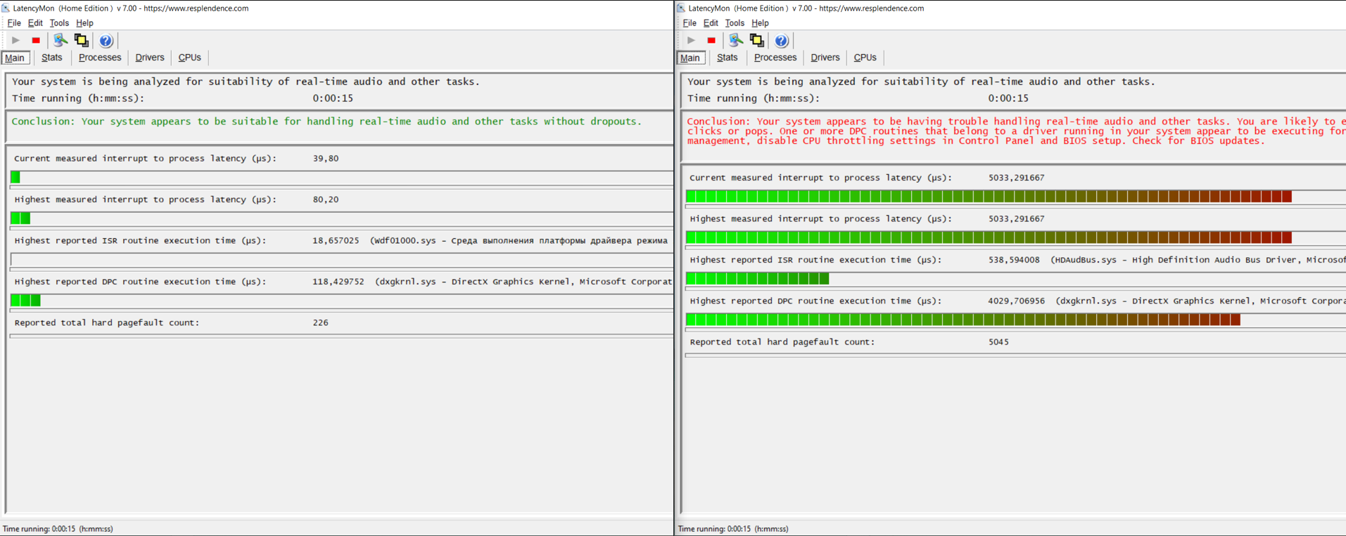 Victor91rus пресловутый смысл в том, что если high/low DPC на бумаге = high/low LAT в работе, то проги типа LatencyMon реально могут служить для быстрой оценки системы на задержки (как furmark на температуры), будь то в звуке или картинке или отзывчивости. Я хотел определить свой макс DPC при котором мне комфортно и пока что нащупал что при 0,5мс я не чувствую влияния DPC, могу сказать проблем нет с задержками, а при 4,0мс не то что игры, винда работает так будто пересел на дуалкоре. Также мне интересно, нет ли связи между моими "комфортными" 0,5мс DPC и частотой системного таймера :