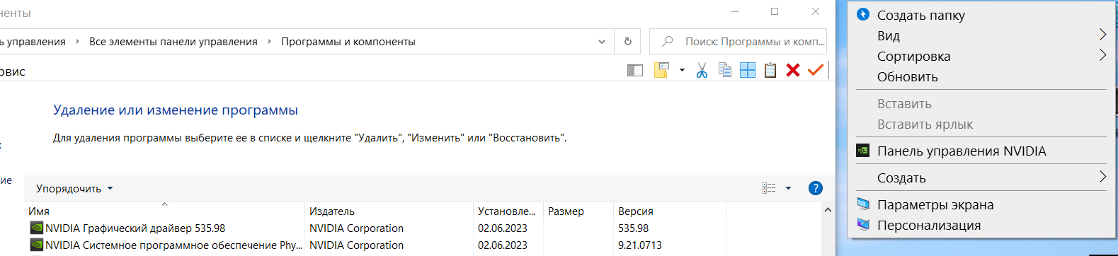 Win 10 посвежее? да чего так все так навязывают? не хочу я новее? работает и пусть работает, и с 1909 и драйвером 535.98 есть ПУ Nvidia в конт. меню раб. стола, и значок в трее.