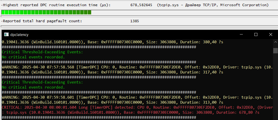 Осуществлять мониторинг программойLatency Monitorнужно в течение 1 минуты, в состоянии простоя системы т.е. без дисковой, сетевой активности, и любой другой, с выключенным ав и приложениями в трее и автозагрузке, не раньше чем через 2 минуты после загрузки системы. Не двигаем мышку и не используем клавиатуру в момент измерений. Потом остановка и скриншот.