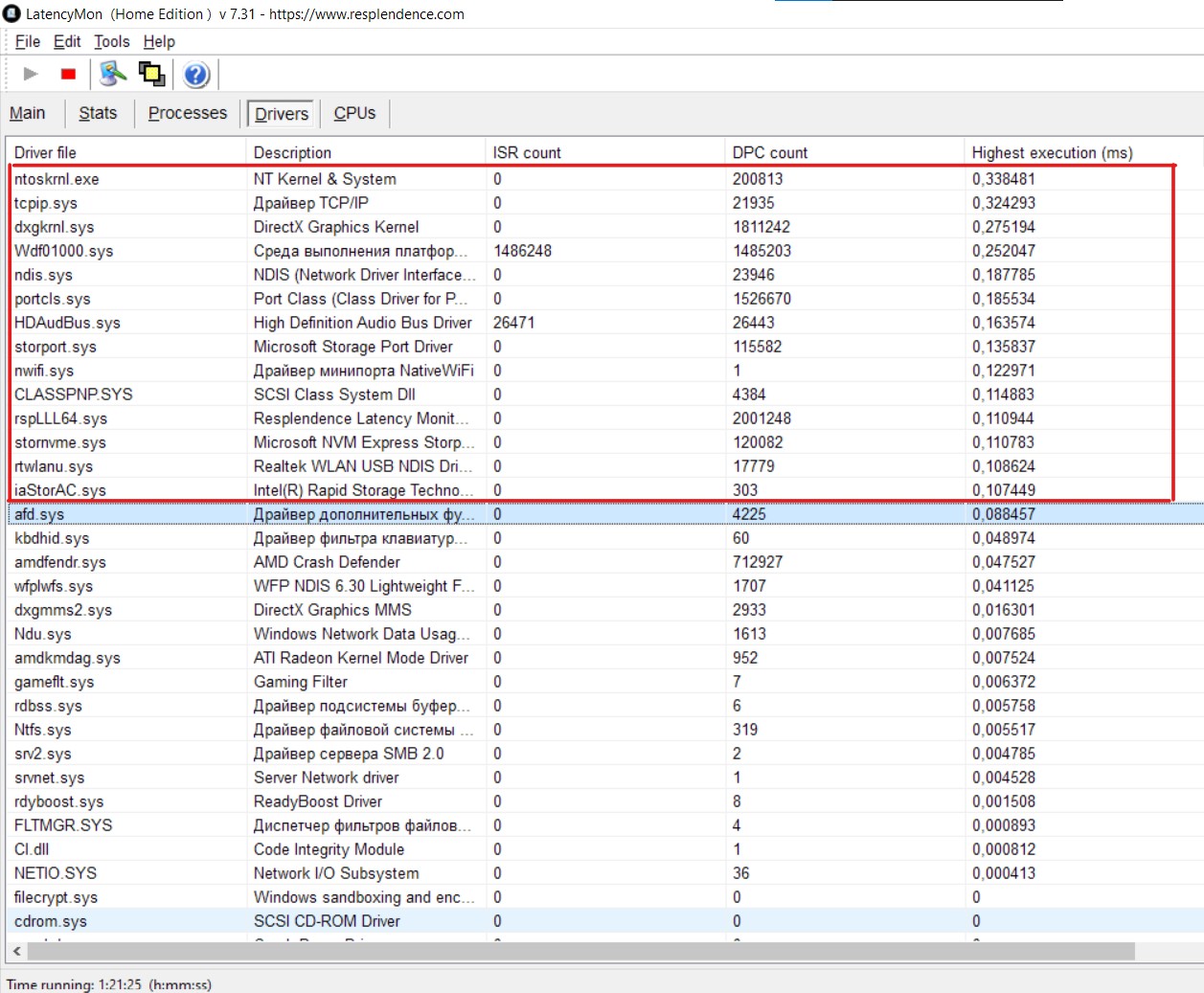anta777 ок, это офф рекомендация майков - "Во избежание снижения скорости отклика системы типичная процедура DPC должна выполняться не более 100 микросекунд при каждом вызове". К бумаге претензий не имею. Просто покажите мне эти "не более 100 микросекунд при каждом вызове" IRL, у меня к этому претензии. Если это недостижимо в реале, то какую практическую ценность имеет эта рекомендация майков ? У кого здесь система работает ≤ 100 мкс на один DPC ?