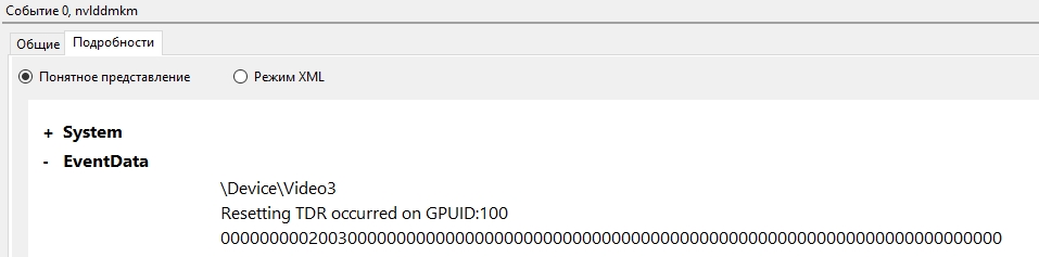 Да на предыдущих было, по этой причине стал обновляться на каждую новую версию, версия 546.33. Дальше: \Device\Video3 Reset TDR occurred on GPUID:100 \Device\Video3 Restarting TDR occurred on GPUID:100 На реддите сейчас нашёл год назад https://www.reddit.com/r/buildapc/comme ... gabyte_oc/ : "Исправление: в панели управления NVIDIA установите для карты режим «Предпочитать максимальную производительность» в качестве временного решения, пока не будет найдено реальное исправление."