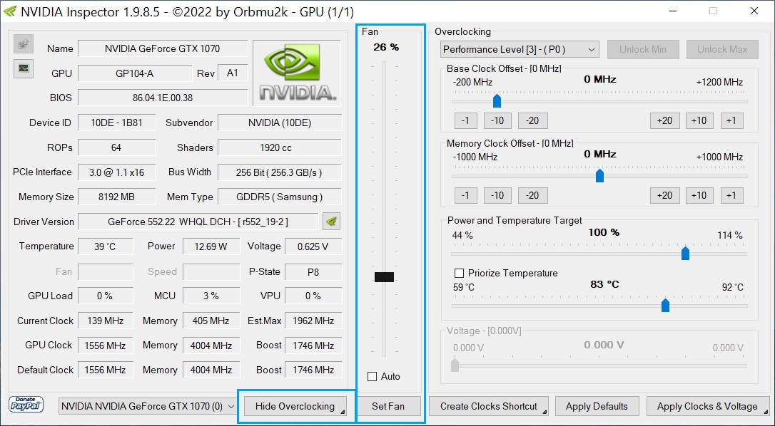 NV Inspector только для принудительного включения вентиляторов ВК, чтобы не дергало старт/стоп при температурах 52-53°C.