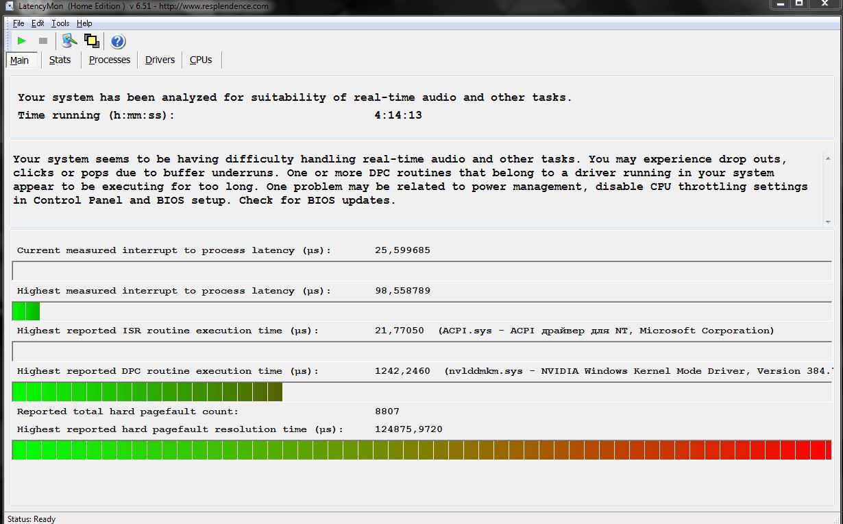 NOTE: some processes were hit by hard pagefaults. If these were programs producing audio, they are likely to interrupt the audio stream resulting in dropouts, clicks and pops. Check the Processes tab to see which programs were hit.