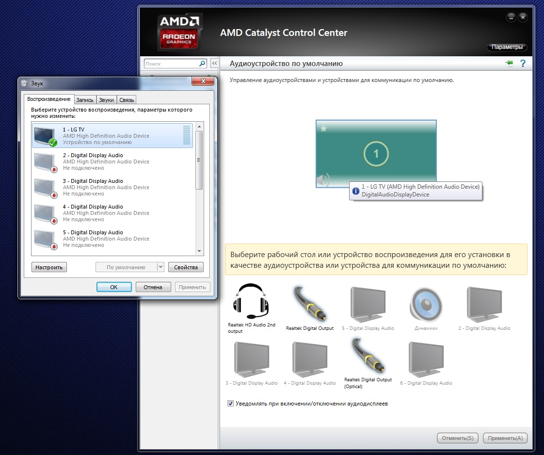 есть еще решение , это расширить экраны , выбрать отображать рабочий стол на 2 дисплее , нажать приминить , подождать 15 секунд и звук появляется, но всеравно это просто ад, косяк именно с видеодрайвером.