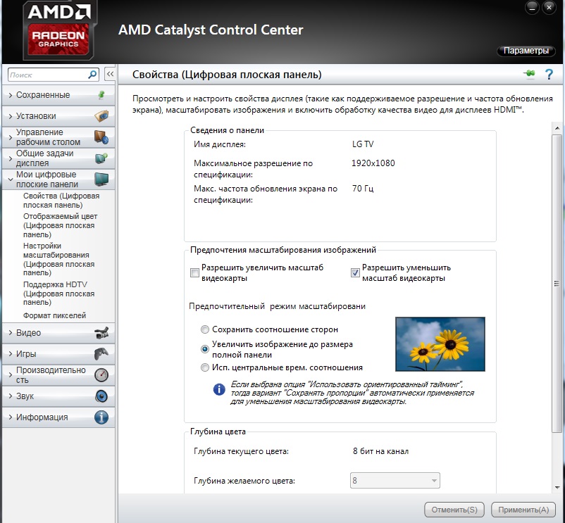 А вы уверены, что вам в дровах надо рыть, к примеру у меня телик тож LG и это проблема неправильно выбранного режима масштабирования ( по карйней мере у меня ) - настройки - экран - ищите вариант масштабирования, да и еще неплохо было бы переключить в игровой режим ( после перезагрузки недостающие 5 герц прилетят ) .