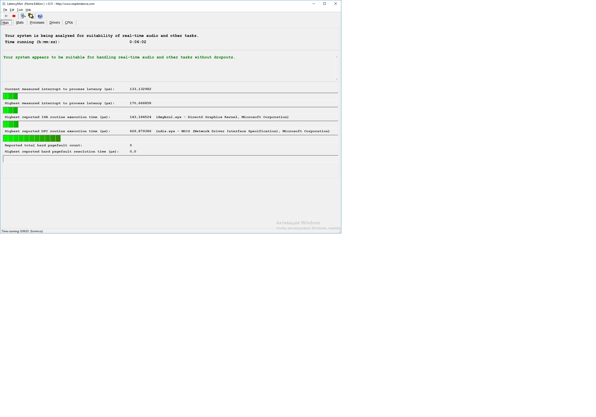 Осуществлять мониторинг программойLatency Monitorнужно в течение 1 минуты, в состоянии простоя системы т.е. без дисковой, сетевой активности, и любой другой, с выключенным ав и приложениями в трее и автозагрузке, не раньше чем через 2 минуты после загрузки системы. Не двигаем мышку и не используем клавиатуру в момент измерений. Потом остановка и скриншот.
