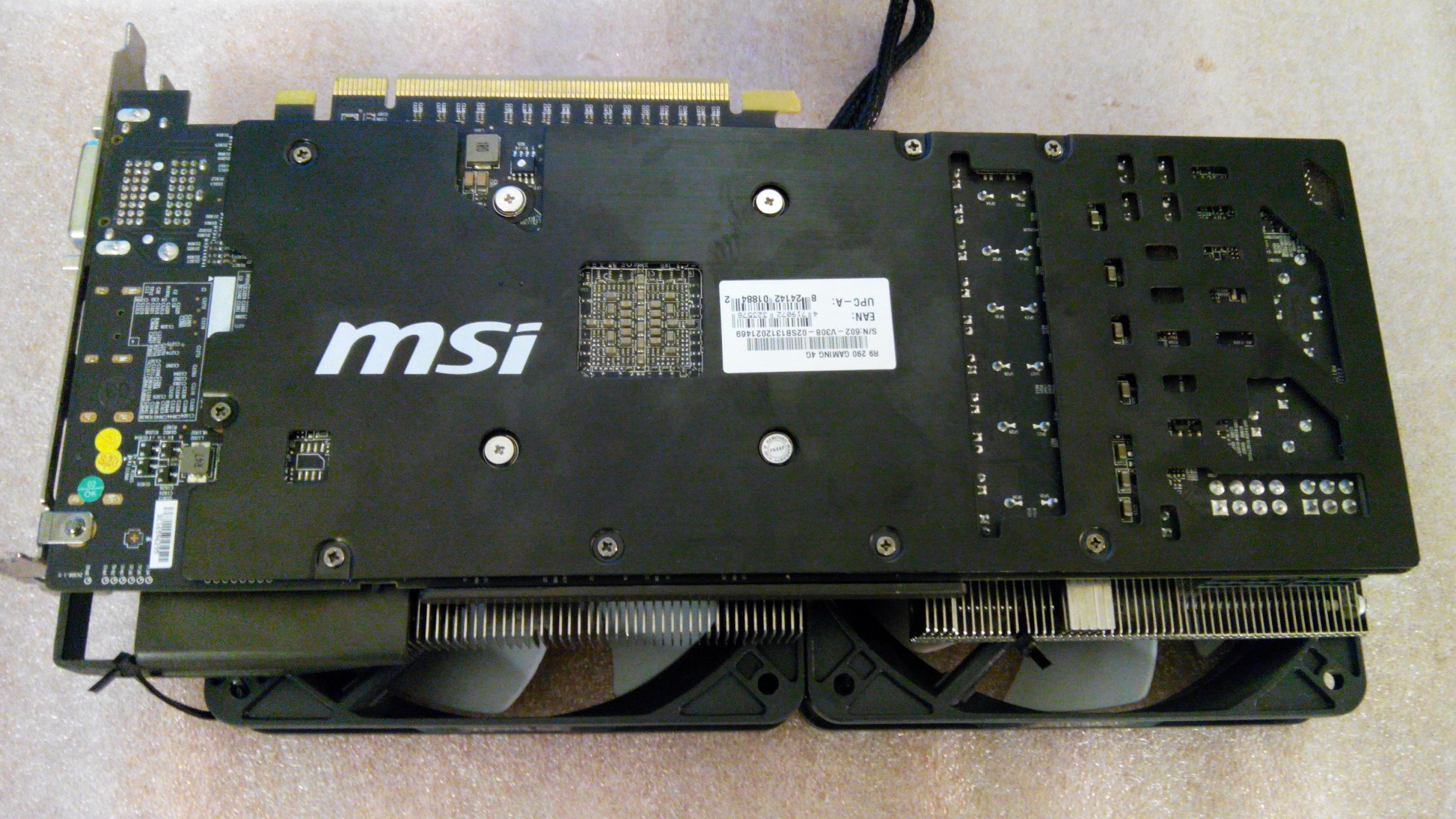 Взял MSI 290 Gaming. Просто был разочарован её системой охлаждения. Вроде VRM неплохо охлаждает(выше 77* не видел), но вот ГП 88-92* легко, при этом СО раскручивается до 100% и становиться настолько шумной. Решил поменять вентиляторы, благо заводская рамка с вентилями снимается легко, без повреждения пломб, их там просто нет ) Поставил вертушки Gelid Silent PWM. Пока подключил к разъемам МП. Попозже сигналы с тахометра и управляющие ШИМ подключу к видюхе, чтоб сама обороты регулировала. Все подключить как-то очень не удобно, мешает радиатор. В итоге, стало очень тихо, темпа ГП спала на 10-13*.