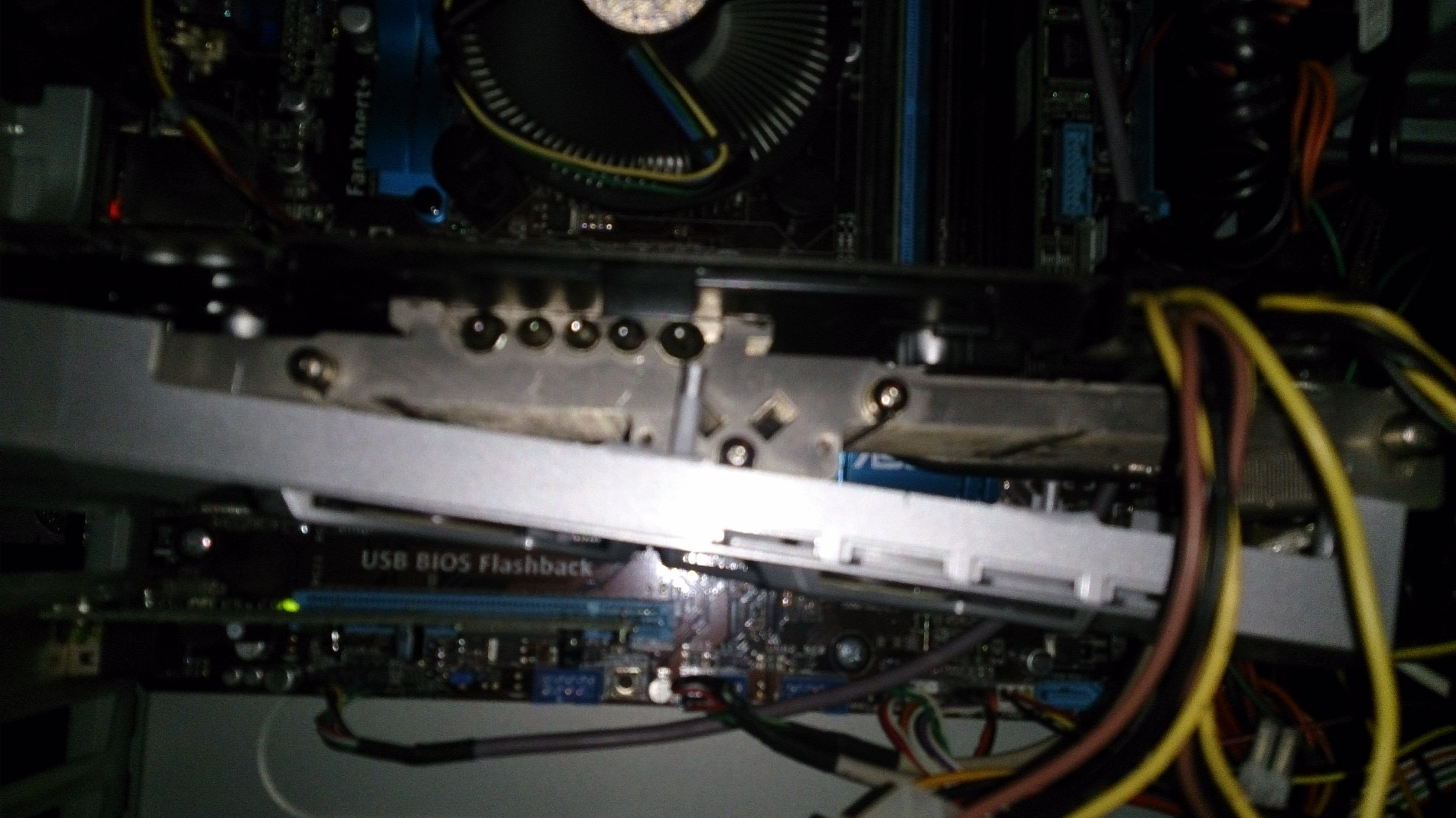 Еще пока нужно довести до ума, TFIII достался в печальном состоянии, с неродными вентилями еще и без управления оборотами, да и кожух огромный (выступает за разъемы). Хочу заказать новые вентили от него и отпилить кусочек кожуха, чтоб задняя стенка не мешала ему... А так пока что сверху скотчем примотан кожух иполита, хреновато выглядит но зато работает. Пы.Сы. Если найду новые вентили температура еще упадет так как они будут ближе к ребрам находиться, а от ипалита на растоянии находятся - нехочу ломать кожух его