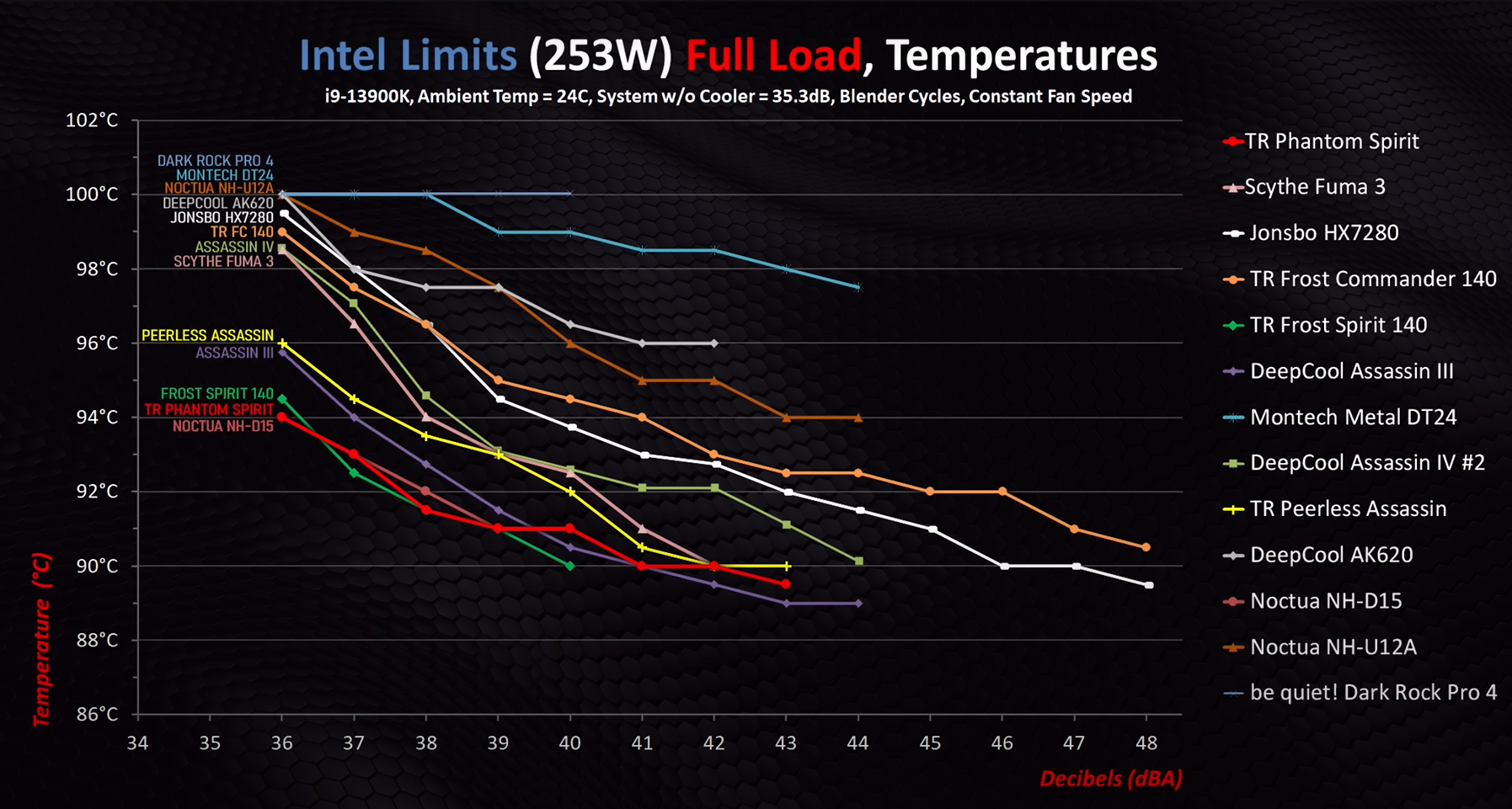 У вас отличные обзоры и но я их увидел к сожалению но после канадцев (у канадцев очень популярный канал и он мне попался первым, вы сами знаете как работают алгоритмы ютуба и гугл, что популярнее то и предлагается). к тому же тест у них с показателями шума да и еще и удобно представлена графически информация. (сразу видно максималка по шуму, какие температуры в динамике, и температуры при том это без привязки к оборотам которые могут быть различны при одном уровне шума(подробности ниже) что по моему мнению очень показательно, и подборка куллеров очень актуальная - 12 штук на одном графике, к тому же из разных ценовых ниш, кому что по душе , выбирай что хочешь по бюджету и параметрам и все в одном месте, понятноо даже не сведующему без опыта в этом вопросе)