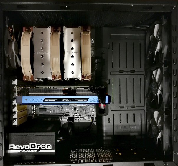 Coltkiss Поменяй все корпусные на Noctua, и сделай 3 спереди на вдув, 1 сзади + 2 сверху - на выдув. У тебя левый вентилятор на D15 через утолщенные уголки установлен?