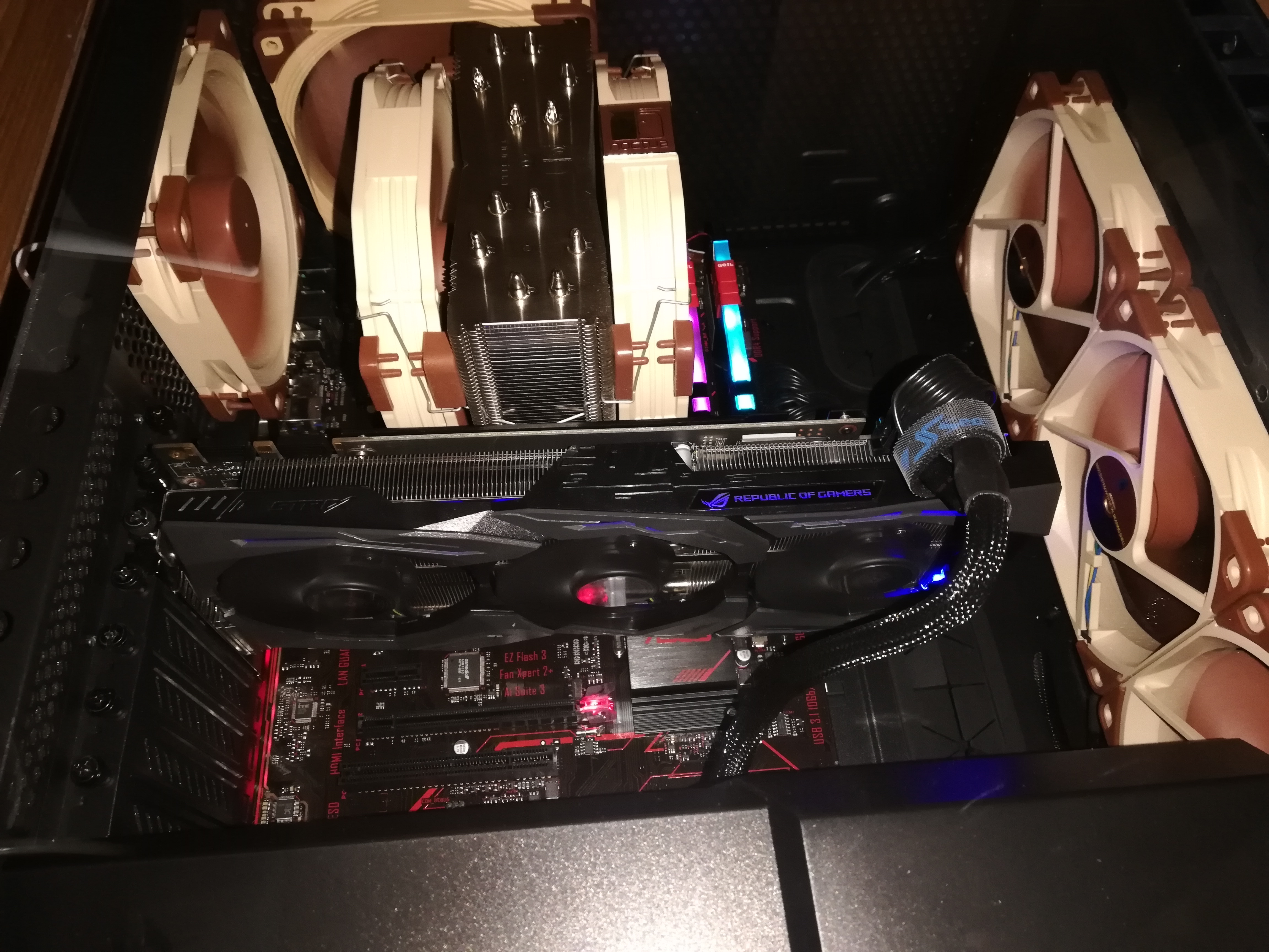 Собственно в чем проблема, после замены видеокарты с 1060 на 1080 прилично выросли температуры в корпусе, чипсет материнки был 34-35 в играх, стало 45-47, на процессоре добавилось +5/7 градусов. Видеокарта(Asus Strix gaming) с андервольтом 850v прогревается до 75с.,(обороты вентиляторов на карте ограничены 1450) Если снять доп. фильтр, температура падает на градусов 10 (чипсет, цп, гпу), но это для меня не вариант. Еще раньше пробовал с этим двойным пылевиком вентиляторы с более сильным стат. давлением - Noiseblocker eloop b12, только разницы по температурам не увидел совсем, поэтом оставил s12a, они тише и без паразитных звуков. Что хочу сейчас, понижение температуры на ~5c. устроит, только что бы не в ущерб тишине и чистоте в корпусе Пока на ум приходит только одна идея, заменить s12a на две штуки nf-a14 или три 12х25 Корпус во время игр так же прилично нагревается, такое ощущение что горячий воздух не успевает выходить.