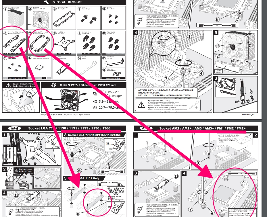 "Информация относительно системы Skylake Компания Scythe EU GmbH сообщает об адаптации процессорных кулеров с системой крепления HPMS к сокету LGA 1151 Skylake т.к. в некоторых случаях из-за сильного давления на процессор Skylake возможно его повреждение, например когда компьютер подвергается сильной тряске при транспортировке. Крепёжный набор укомплектован дополнительными дистанционными алюминиевыми шайбами* для снижения давления на процессор Skylake. Шайбы будут высланы желающим бесплатно. Для этого необходимо сделать запрос в техподдержку на емэйл адрес support@scythe.com или заполнить формуляр запроса на нашей вебстранице.