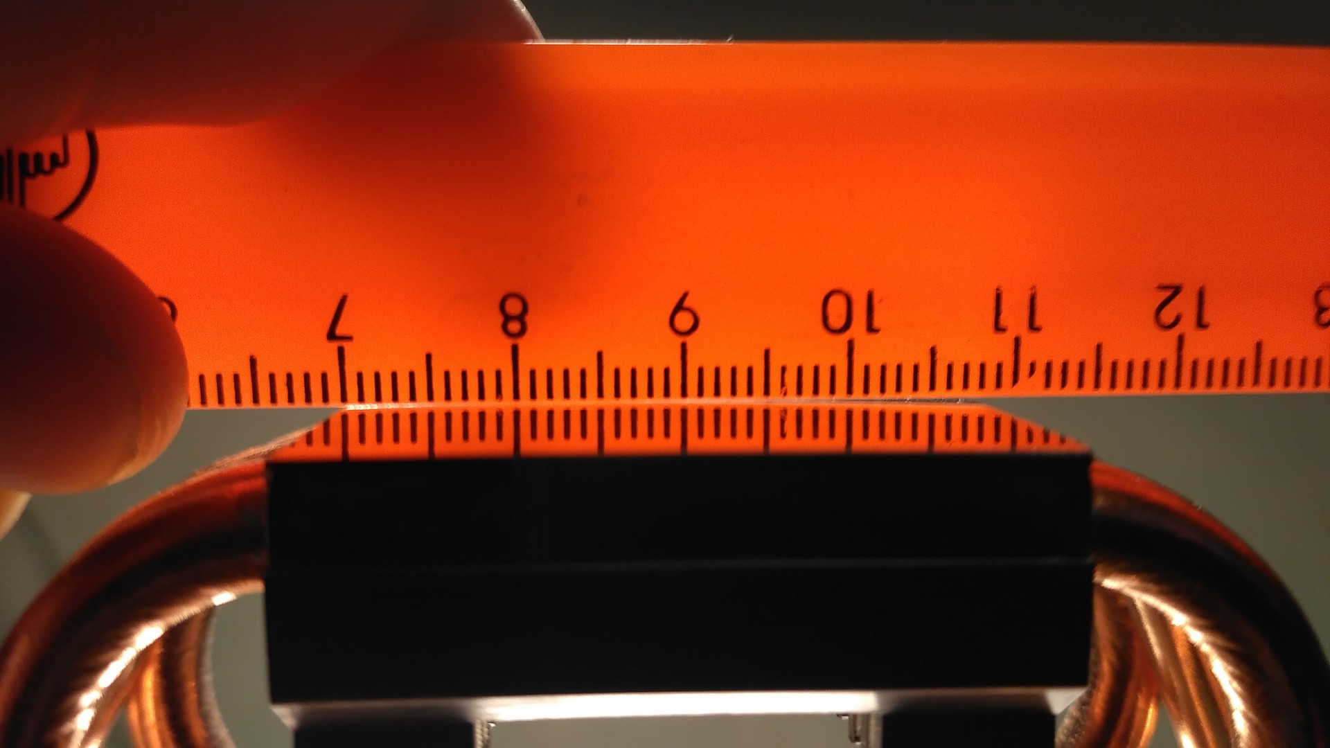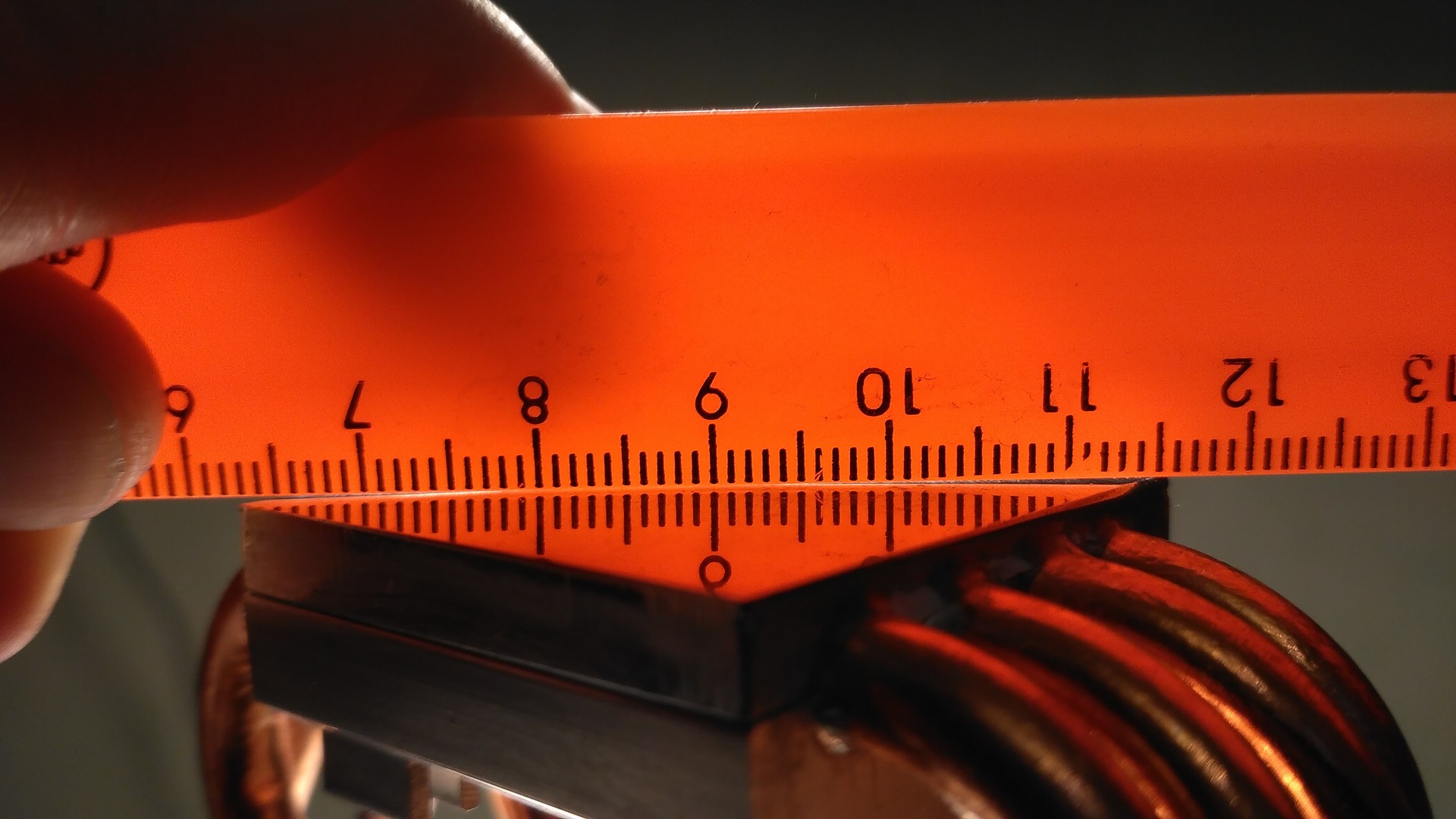 Всем привет! В продолжение поста "Люфт кулера Scythe Kotetsu" https://forums.overclockers.ru/viewtopic.php?p=14985296#p14985296 В общем так: По рекомендации "Scythe Staff" с их форума для устранения люфта и провисания кулера необходимо снять дополнительные алюминиевые предохранительных шайбы для Скайлайка. В общем сегодня руки дошли только спустя полгода. Читая всякие обзоры, видел как прикладывают линейку к подошве кулера для определения равномерности - думаю дайка приложу когда же еще сниму кулер!