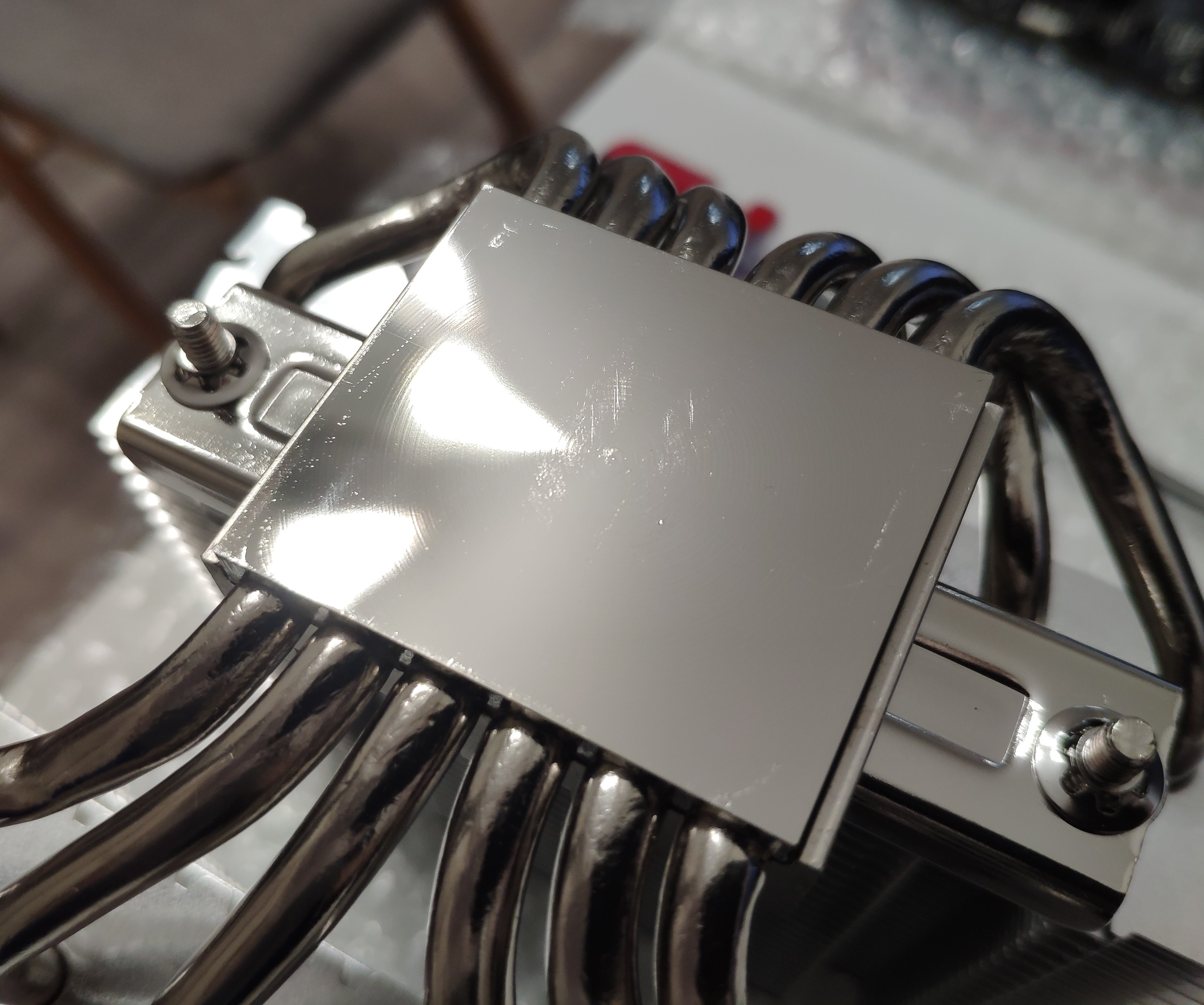 4. Кулер оставляет на процессоре коцки по центру (снимал пару раз, т.к. первый раз по неопытности намазал много термопасты и она вытекла со всех сторон, а второй раз поменял термопасту на Noctua NT-H1). Будто в центре он давит на него сильнее, чем с других сторон. Это нормально? Жалко внешний вид проца (вдруг на продажу). А на площадке самого кулера проц по периметру оставил отпечаток, что тоже странно.