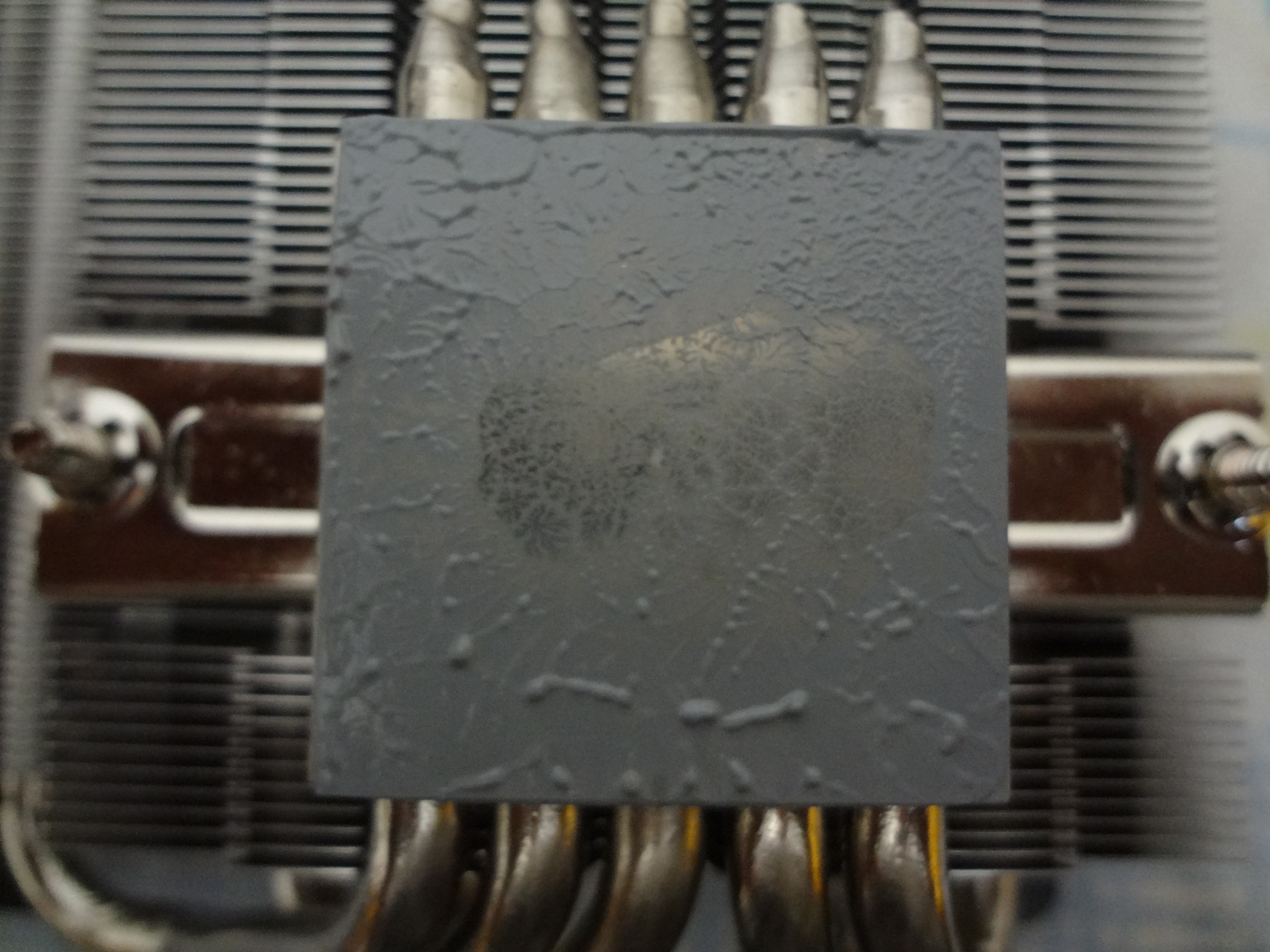 Если посмотреть отзывы о кулере на том же Амазоне, то можно убедиться в том, что ноги процессора легко убить, если Фуму 2 до упора закрутить. Один прямо так и пишет, что делал все, как на видео, но, как результат, дохлый проц (5800X, хотя подробностей немного, что там случилось, и фото ног нету) и отпечаток в центре проца от кулера как у меня (я считаю, что кулер не должен до такой степени впечатываться в проц в одной точке). У другого ревьювера - погнутые контакты на LGA1151.