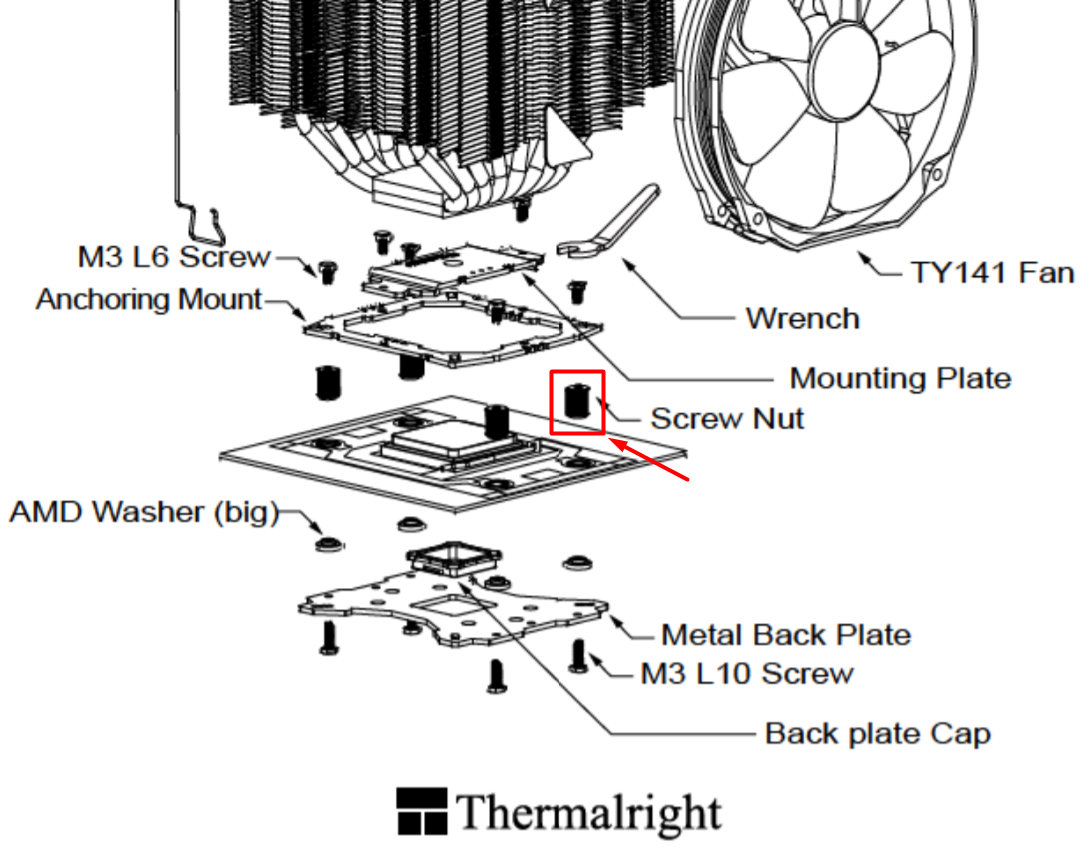 Господа. Подскажите, пожалуйста, высоту гаек-втулок на кулерах Tharmalright под АМ4/АМ3. Выделил красным на рисунке. Они вроде еще с шайбой-прокладкой пластиковой идут.