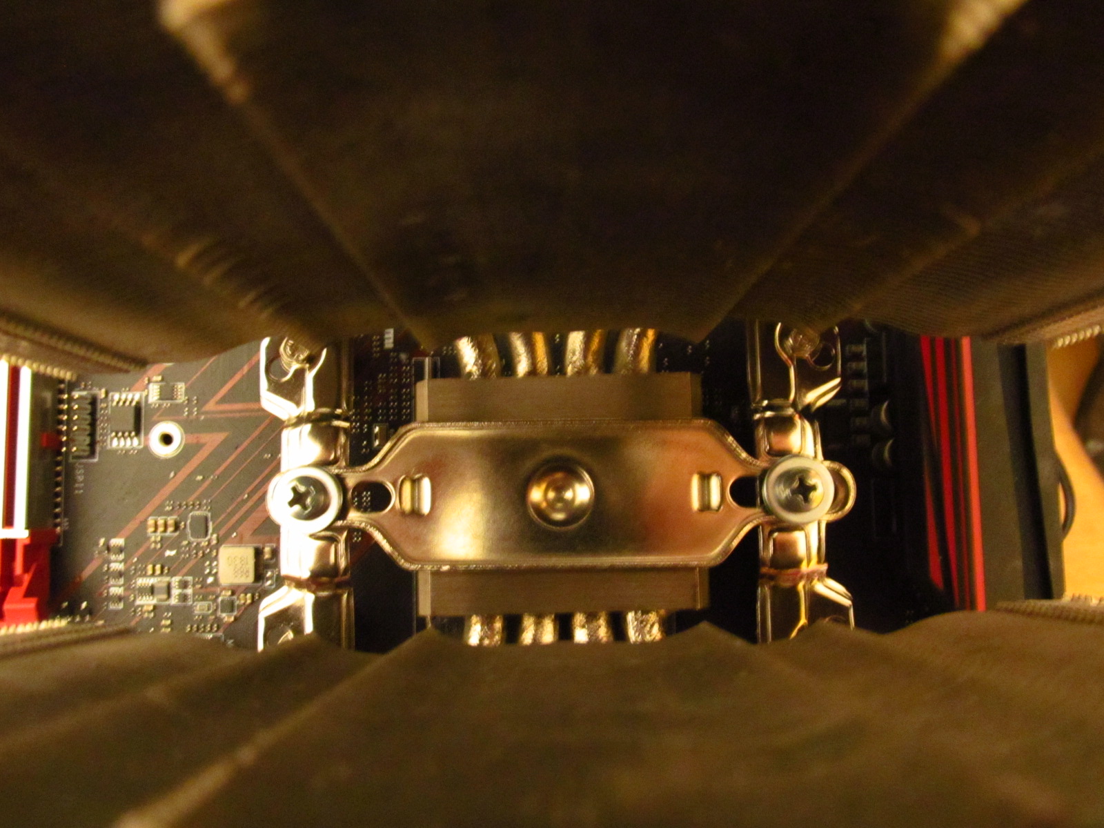 Кулер куплен был давно, но компьютер собрался только сейчас. Докуплен универсальный коплект креплений под все сокеты. И какого же было мое удивление, что корректно установить я его не могу. Установка возможна только в одном положении, в неправильном. И даже если его так поставить, то нижний вентилятор будет мешать видеокарте, значит остается только установка в середину и наверх, но в этом случае первая секция не будет охлаждаться. В общем я не понимаю зачем Thermalright добавил поддержку моего кулера.