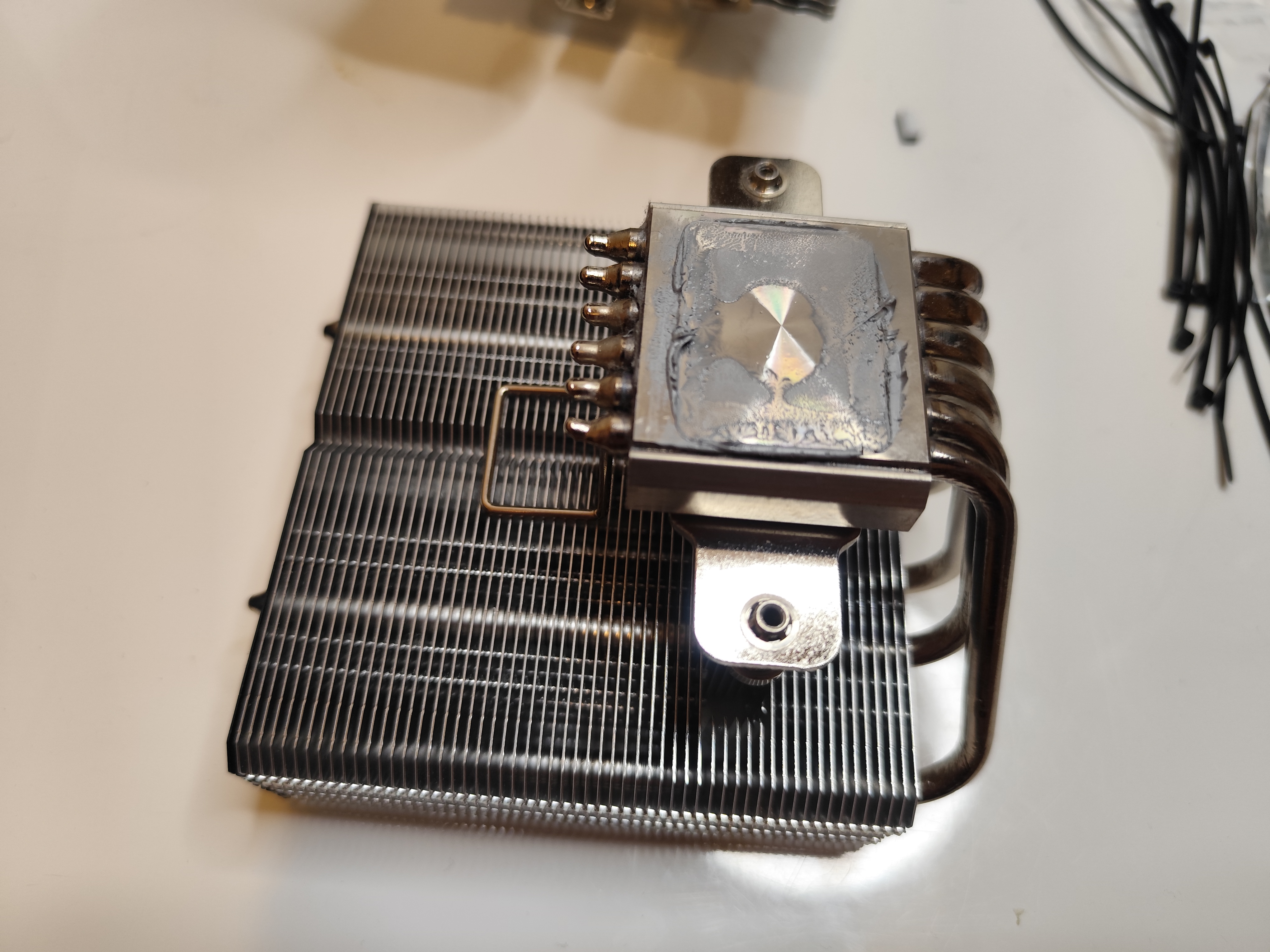 Или как вариант - паять в специальной установке, позволяющей фиксировать радиатор в нужных положениях и, при этом, надёжно фиксирующая взаимное положение деталей радиатора... и обязательно сдавливающая/удерживающая бутерброд из основания и трубок.