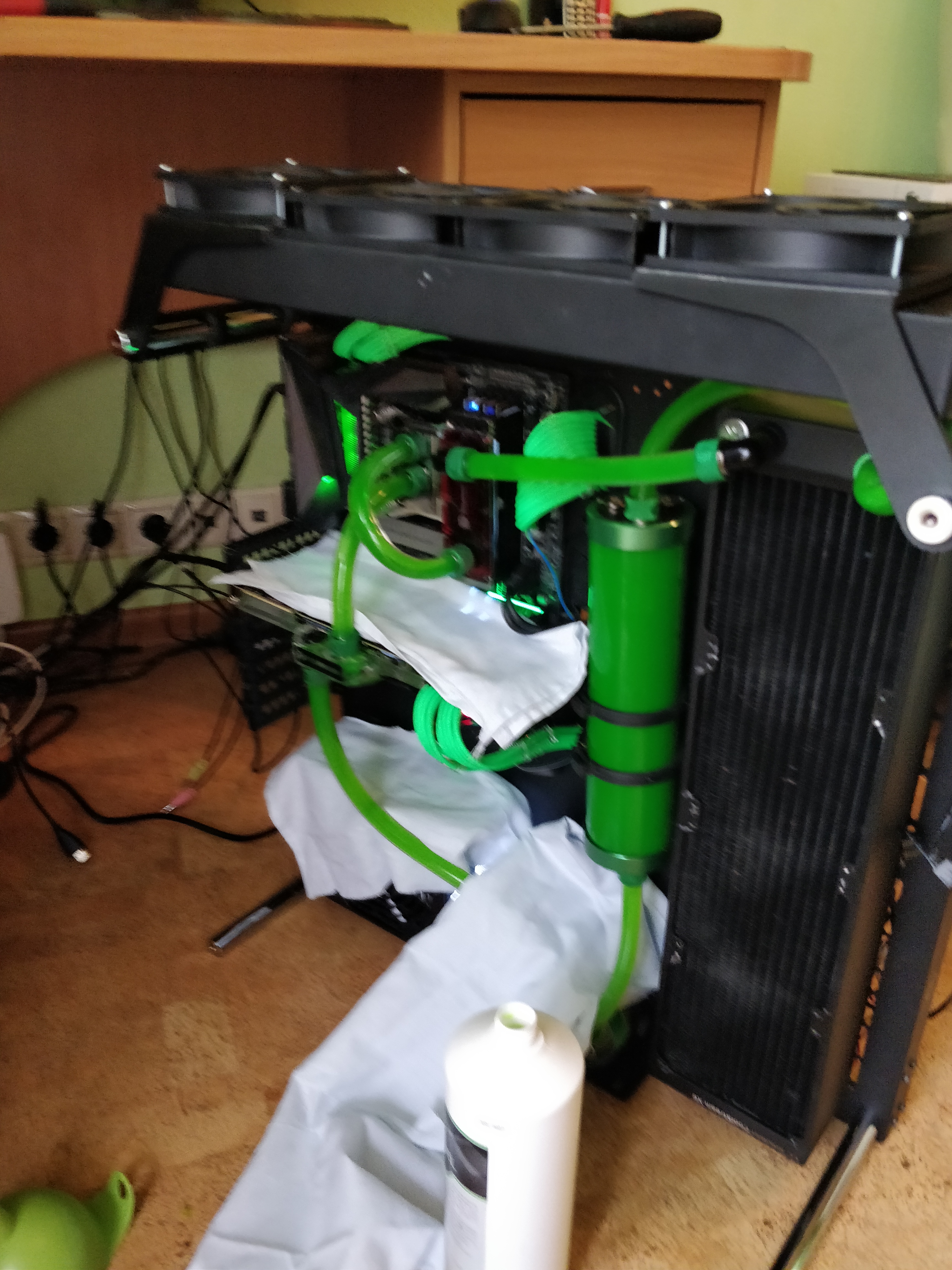 1. Сам контур, все стоит именно в том порядке, который описываю: помпа ek d5 (всегда работает на 100% оборотов)- водоблок на видеокарту 2080ти barrow - водоблок ЦПУ heatkiller iv - водоблок на 4 плашки ОЗУ - радиатор ek coolstream 480 xe - радиатор ek coolstream 480 pe - резервуар. Мягкие трубки 12/16