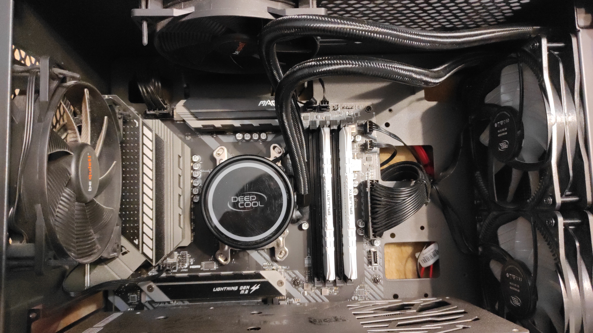 Да как, как. Просто воткнул в материнку, она у него давай крутить на полную скорость вентиляторы, когда райзен пытается бустить при 1,5В в браузере, хотя ему и в нагрузке будет достаточно 800-1000 бесшумных оборотов. Хз что там у него с видеокартой стало, но видимо вытяжки нет совсем или стоит, что-то для вида, и мощные вентили AIO ему заруинили потоки, что карта начала гонять вокруг себя горячий воздух.