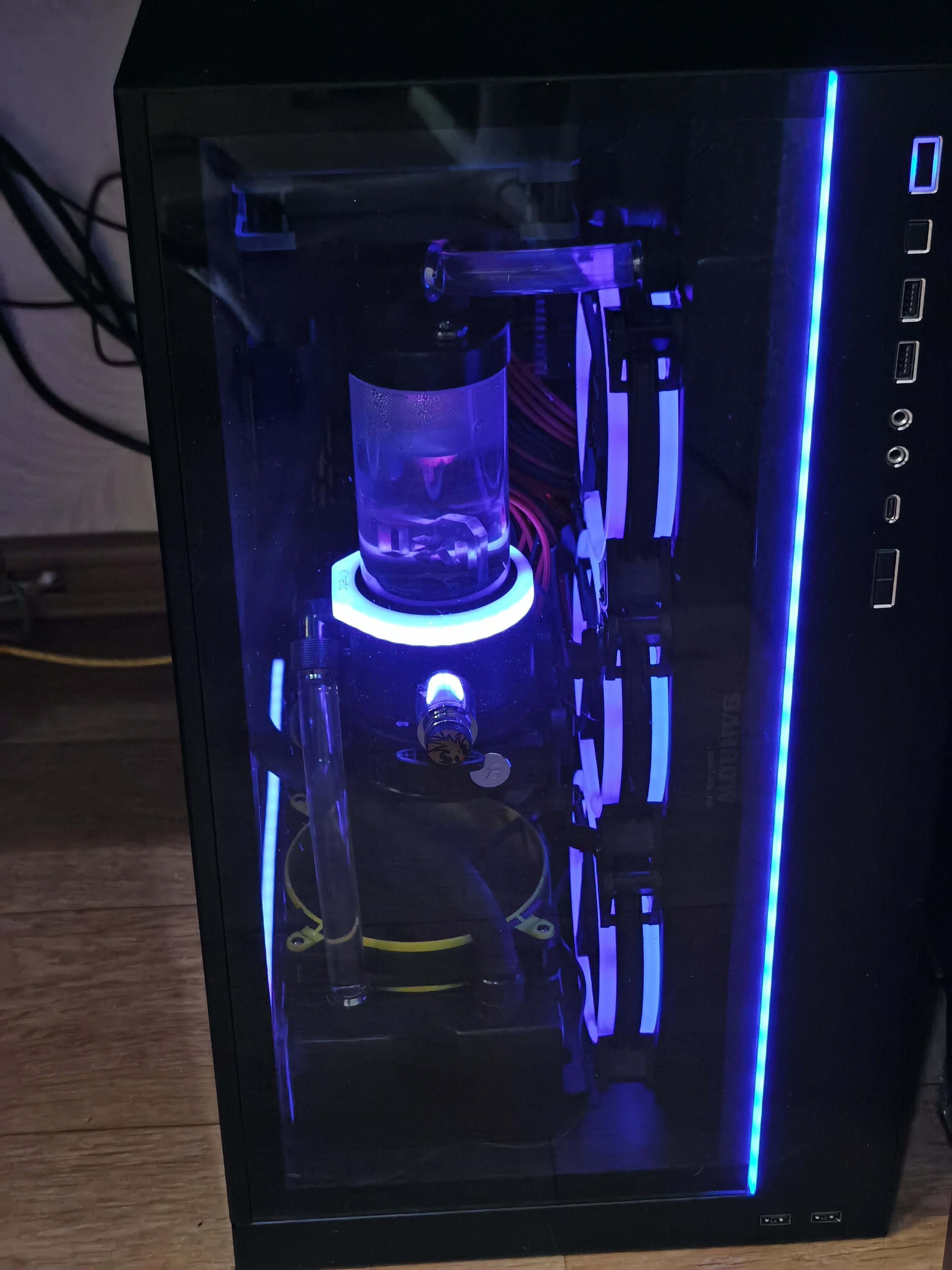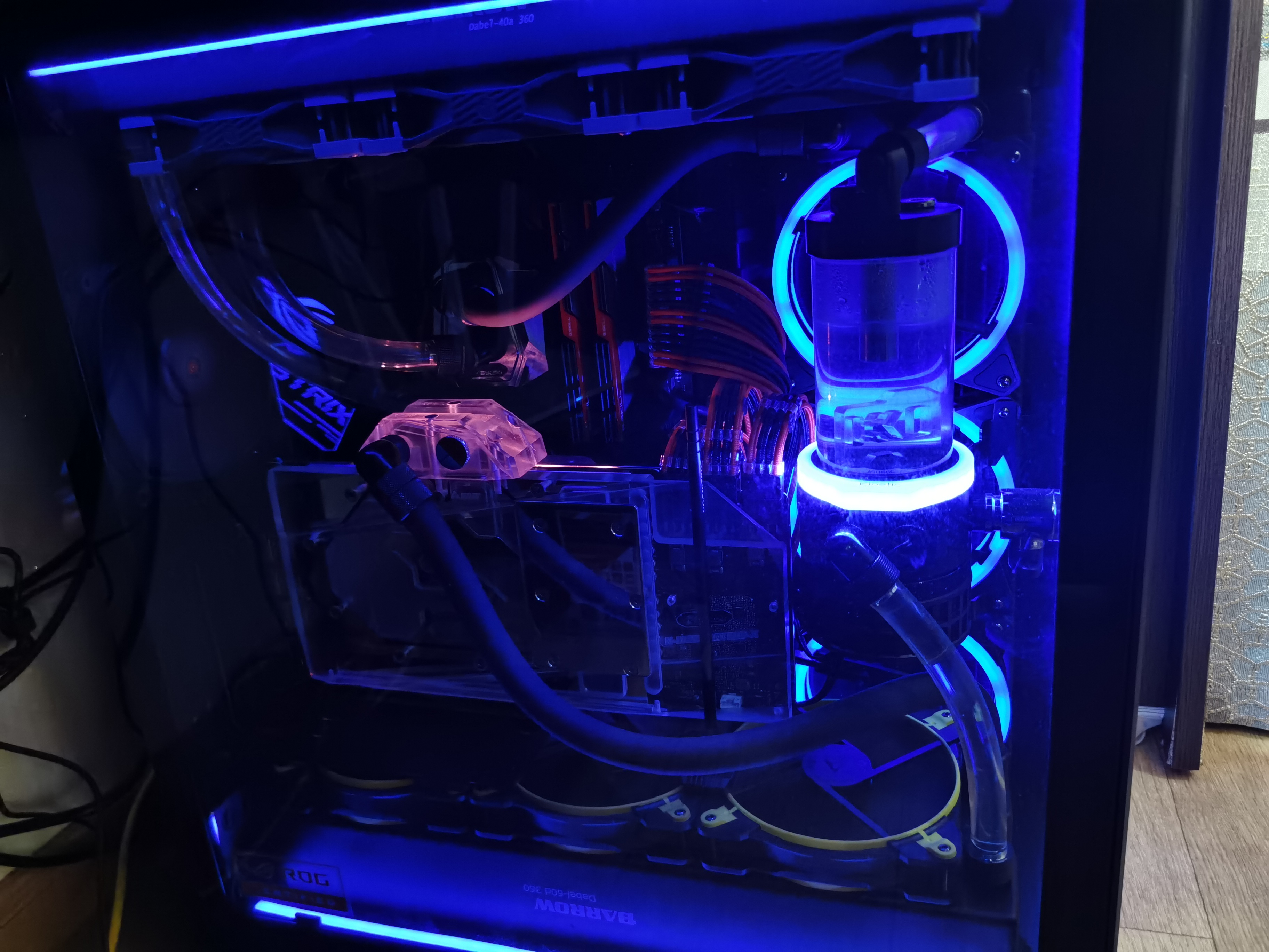 CHiCHo Конфиг у меня такой. Проц -10900к (5гц на постоянку, разгон кольцевой шины до 4,7), память разгон с 3600 до 4000, печ 3090 даунвольт с разгоном чипа до 1965 и памяти +1200 на постояну. Вентеля крутят 1000 тоже на постоянке. Радиаторы все от barrow, водоблок на вк byksky с активным бэкплейтом, на цп byksky CPU-XPR-CU-I-V2. Термопаста везде Iceberg Thermal FUZEIce Plus. Помпа ekwb d5 с настройкой по температурному сенсору (сенсор стоит в одном из портов помпы) до 30 градусов С это 50% с 50С это 100%. Жижа ekwb прозрачная. В комнате в среднем 23-25 градусов. Температура жижи при длительной нагрузке доходит до 48 градусов. Такая температура жижи тоже не устраивает, думаю добавить ряд вентелей под 60й радиатор. Кстати может из бывалых кто что посоветует?
