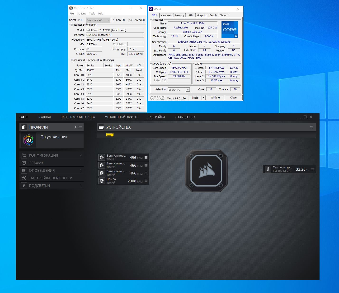 Dmitriy54 А что за скрины, не видно с каким процессором тесты, давай уж полные ссылки. Интересно глянуть. У меня что летом при работающих 4-ех торрентах плюс браузер, считай простой, 35-38 градусов что сейчас в комнате 23 градуса.. (AIO) Corsair iCUE H150i Elite Capellix