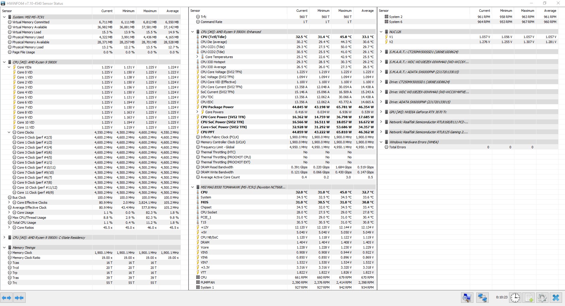 Ради вас мои юные сравниватели надыбал скрин 8 часового использования компа где на 1м ссд 32гр а на 2м 29гр при 600 оборотах... Тогда как в тестах 4 вертушки молотят на 1800...