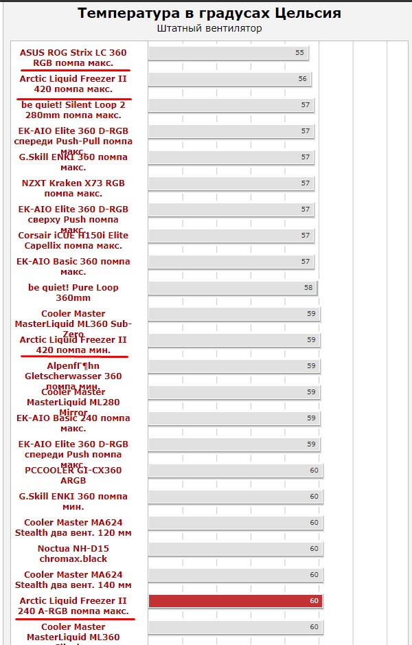 Логично, что скрины=графики от одних и тех же тестеров)) Но гуру не понять, что 45дб и 60дб это совершенно разное. Даже если температура у двух одинаковых 240 систем будет равная, то 15бд это пропасть. А установка одинаковых вертушек сокращает разницу в цене до 1-1, 5 тысяч. И не надо тут про 1000об. Арктик на максимуме будет шуметь как дипкул на 1000)) Даже не знаю ради чего такая экономия. А тот факт, что у дипкула нет 420 модели говорит сам за себя.