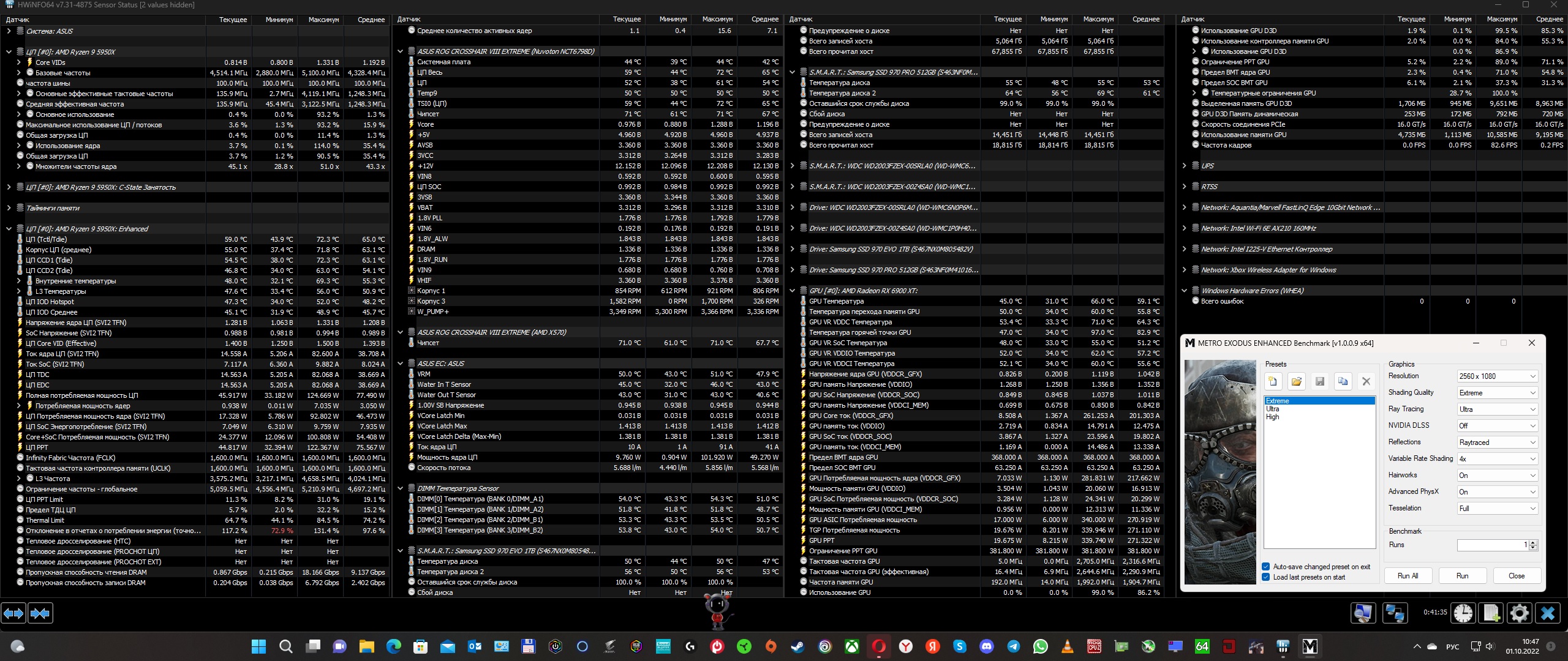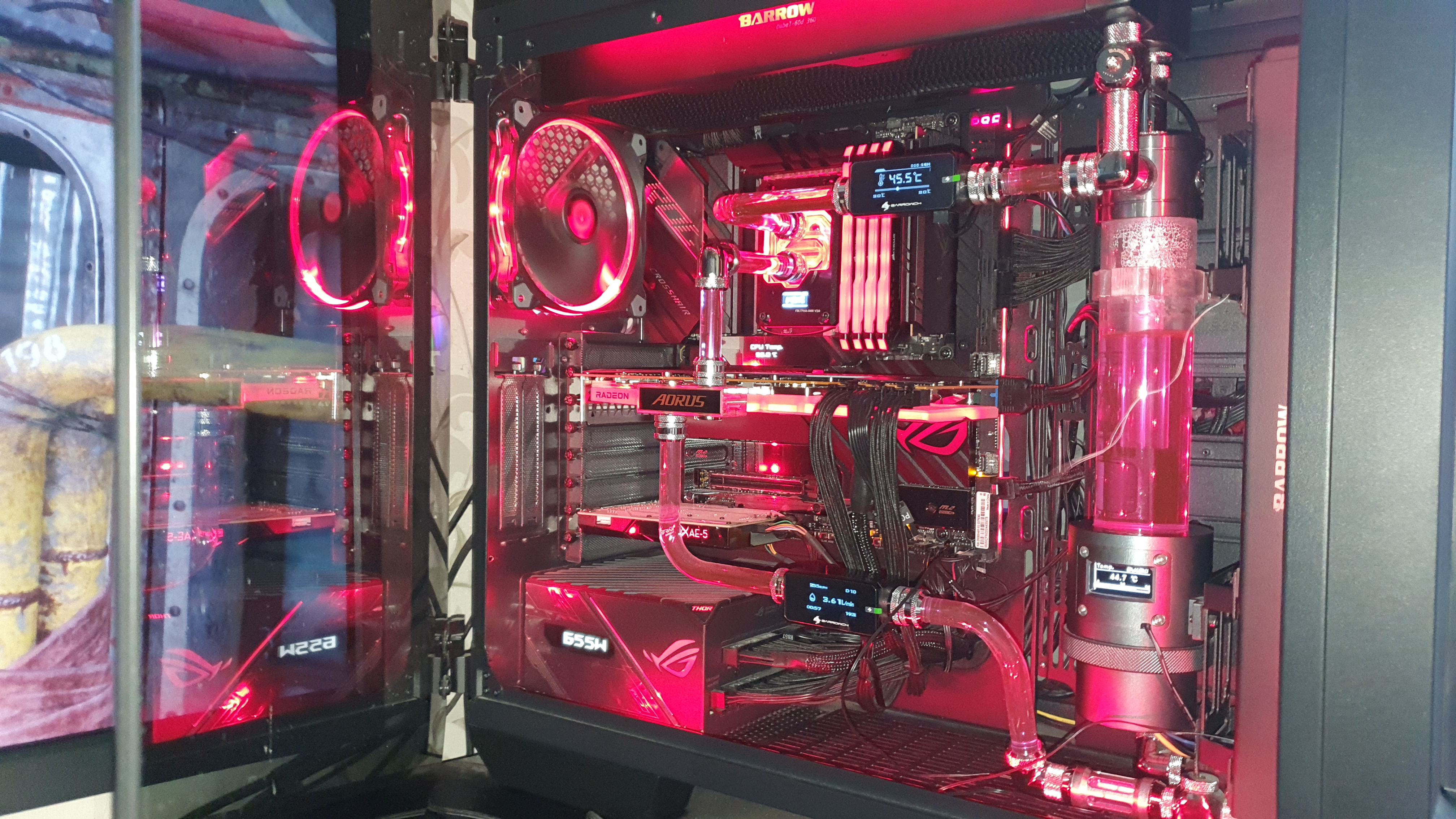прогнал у себя в цикле бенч Metro Exodus c макс настройками в комнате 25, температура воды в простое 27.4-27.8, в бенче 33.3-33.8 вентили в корпусе 750(вдув)-850(выдув), на МОРЕ 625 если HighFlow Next правильно посчитала, рассеивая мощность макс 695Вт (потребляемая мощность, процессор макс 216, карта 400 по HWinfo) температуры на карте в бенче 50.2/50.0/58.7 (GPU/MEM/HOT Spot)