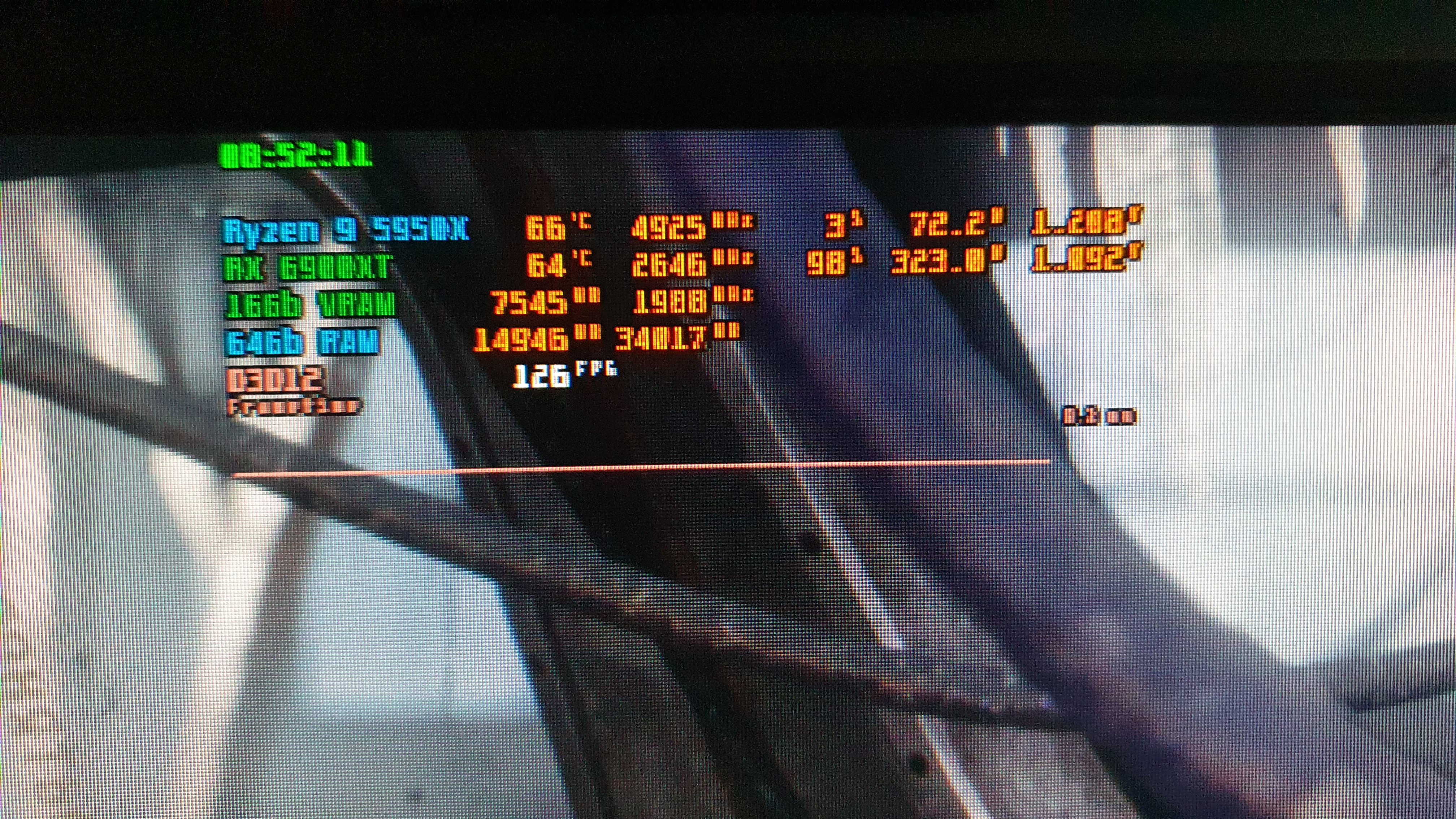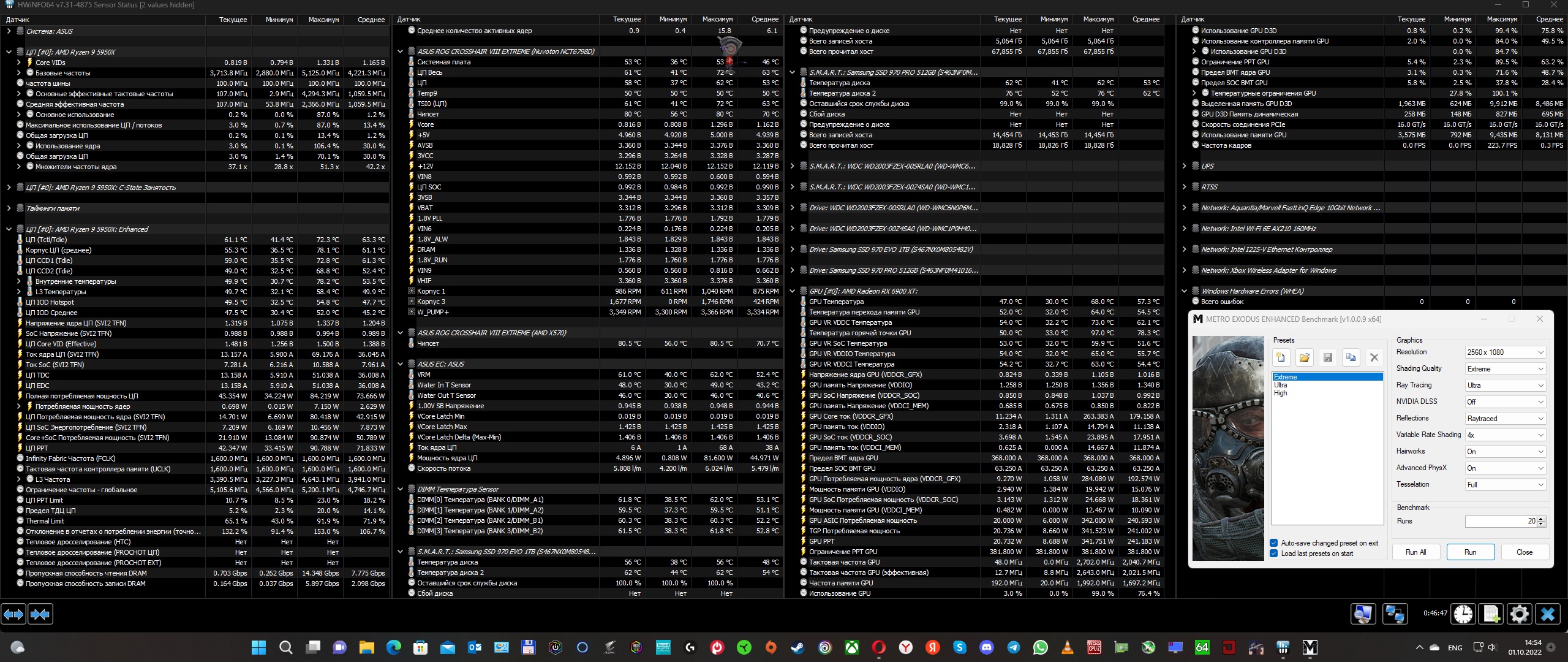 Просто контроллер Barrow "криво" посылает сигнал тахометра, 2-3 сек. сигнал есть, 10-20 - тишина. Не разбирался с ним, управляет вертушками нормально и ладно. По моим наблюдениям, на картах AMD (по крайней мере на моей 6900XT, других никогда не было) потребление мониторится только по питанию GPU, без учёта потребления VRAM, на NVIDIA же - всей карты в целом. К пиковому потреблению GPU нужно прибавить ещё ~100W, будет примерно 440W. На этой же сборке до 6900XT стояла двуконнекторная 3080Ti с лимитом 370W, в Метро она долбится в PL=350W. Так вот, в Метро на этом же железе с 3080Ti пиковое потребление c розетки было 540W, а с 6900XT - 700W. Nap, загерметезировал все щели между вертушками и радиаторами 3М-скотчем и установил, как изначально было, все на вдув - Push.