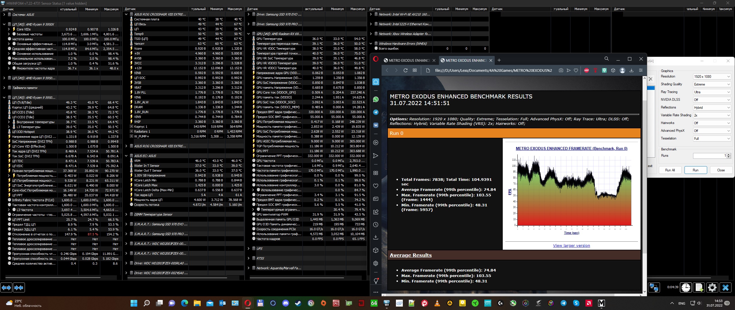 Я думаю если оставить 2 радиатора на выдув (если нет желания менять стекла на вентиляторы на вдув) то темпы будут ниже чем сейчас с 3 радиаторами.