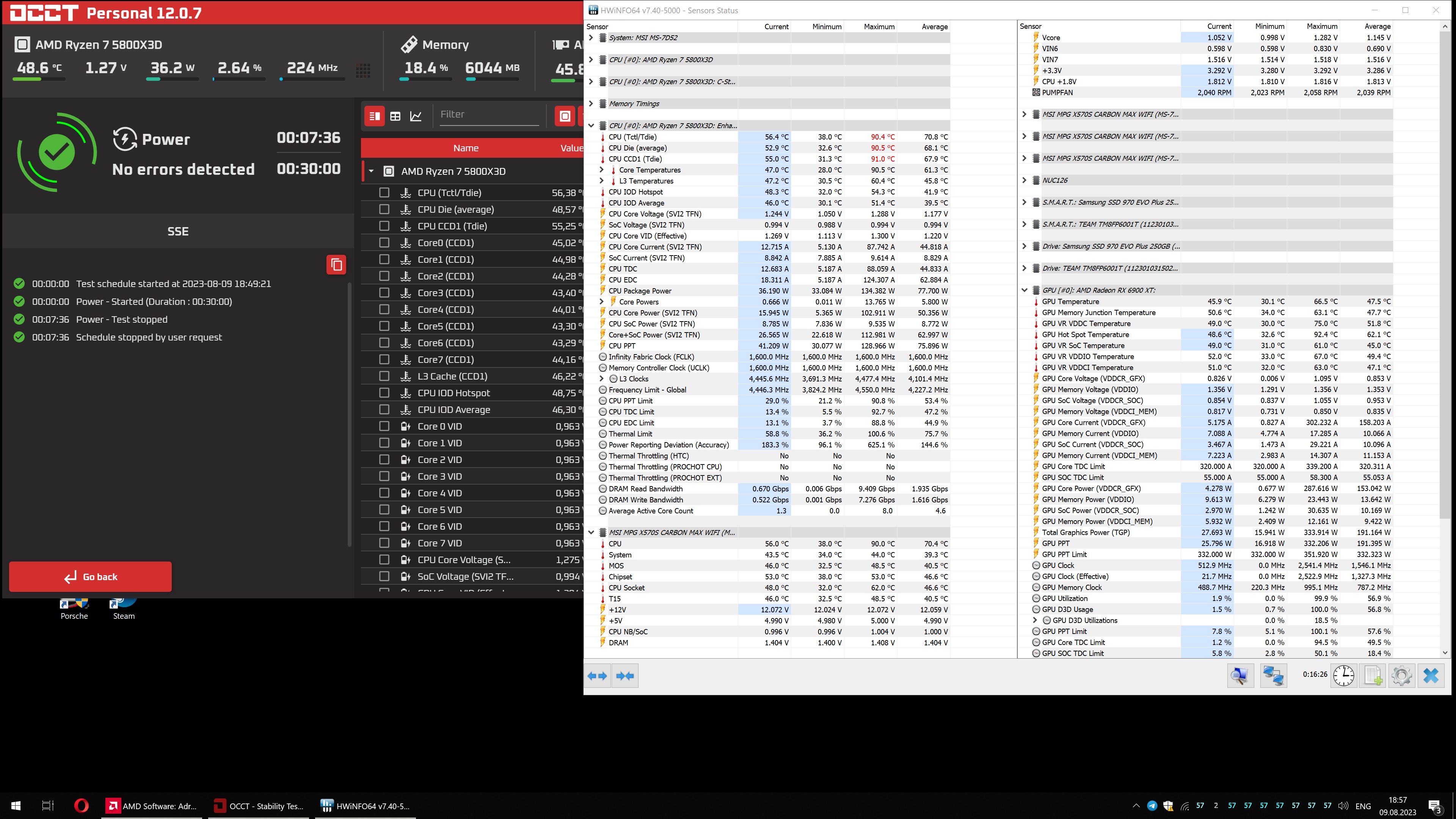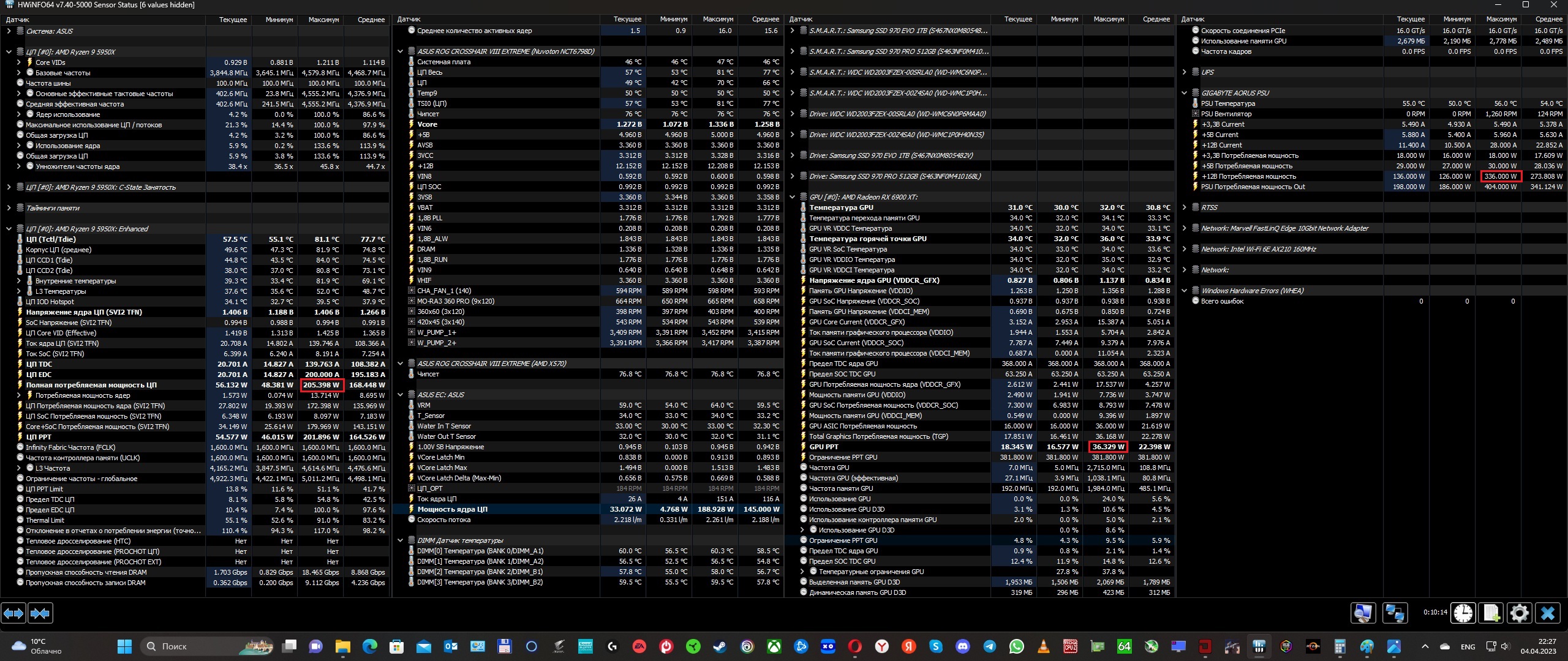 Вот именно! Потому что там намного больше 250W твоих Нашёл у себя ещё пару скринов с 6900XT на одной системе. Одному тугодуму уже объяснял, ты видимо где-то шатался и всё пропустил или как обычно, читаешь по диагонали Есть тест с линпаком в котором рассчитывается потребление всей периферии, без учёта CPU и GPU. Оно составит 336W-205W-36W=95W