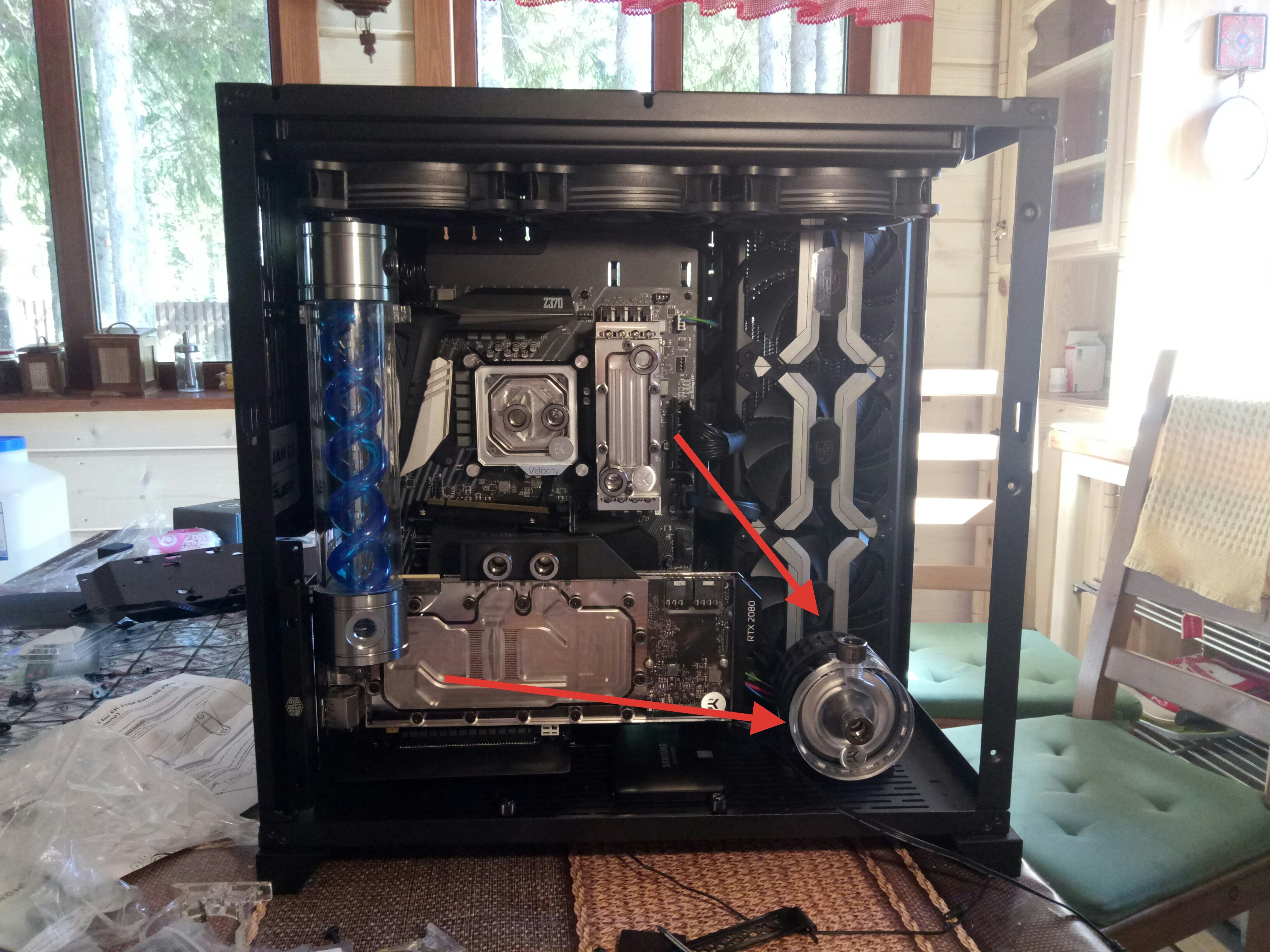 Трубки там, не шланги) iceinmyeyes Гните как вам удобно. Рез-помпа-ватеры-рады-рез. Первым поток в ватер пускайте в тот, температуры которого вам важнее. Разница большой не будет в температуре, но пару градусов разницы будет. И из-за нагрева, и из-за гдс создаваемого ватерами. Память я бы последней оставил, выбирайте что для вас важнее, вк или проц? Помпу жёстко планируете крепить к полу? Достаточно будет под помпу подложить любую прокладку поролоновую, не будет лишних вибраций на корпус.