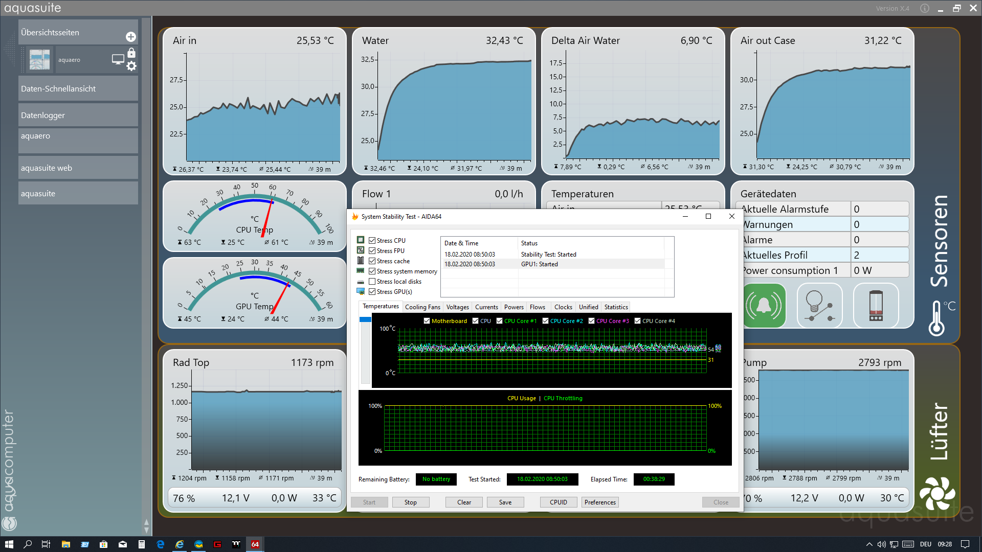По поводу радиаторов Возьмём для сравнения "эталонную" для всего мира сборку всеми нами "уважаемого и любимого" CrownA С его супер-пупер радиатором Coolgate Copper Radiator Triple140/60mm вынесенным за пределы корпуса. И мою с дохлым Alphacool NexXxoS ST30 Full Copper 280/30mm в корпусе. Его скрин с макс. нагрузкой