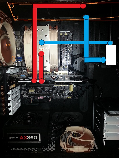 Добавлено спустя 1 час 46 минут 1 секунду: набросал 3 варианта- жду исправлений=) В радиаторе и на водоблоках нет in/out? в них поток можно в любых направлениях?