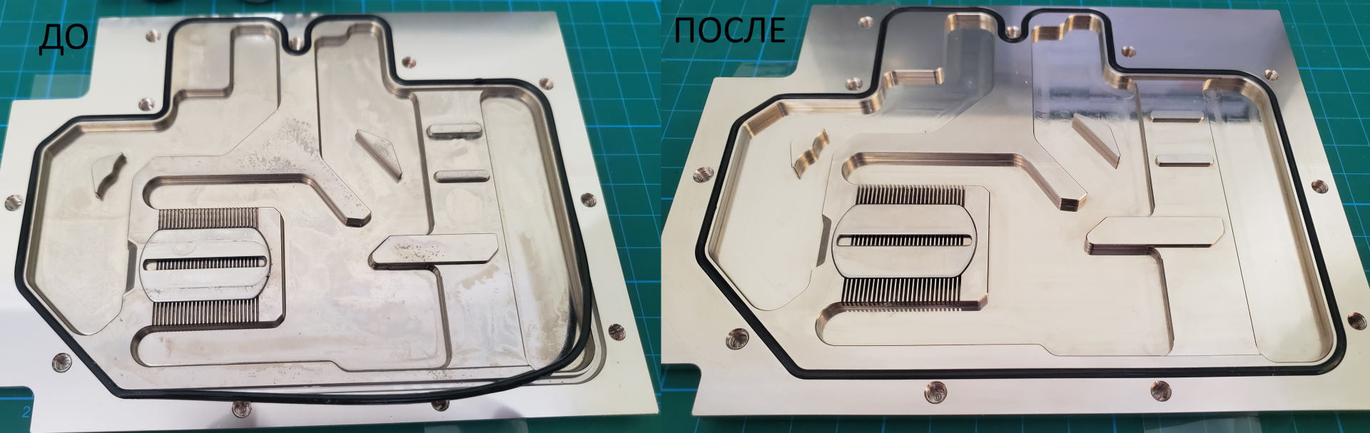 в продолжении разговора здесь (СЖО. Выбор и обсуждение теплоносителей #16811259) провел чистку водоблока GPU (См. вложения) Метал помыл просто водичкой с фэйри, потом обезжирил изопропилом. Акрил просто водичкой с фэйри. С ПВХ стенок трубок также легко слетает ватным диском. Откуда эта хрень и не знаю. но думаю в радиаторах она налипла.
