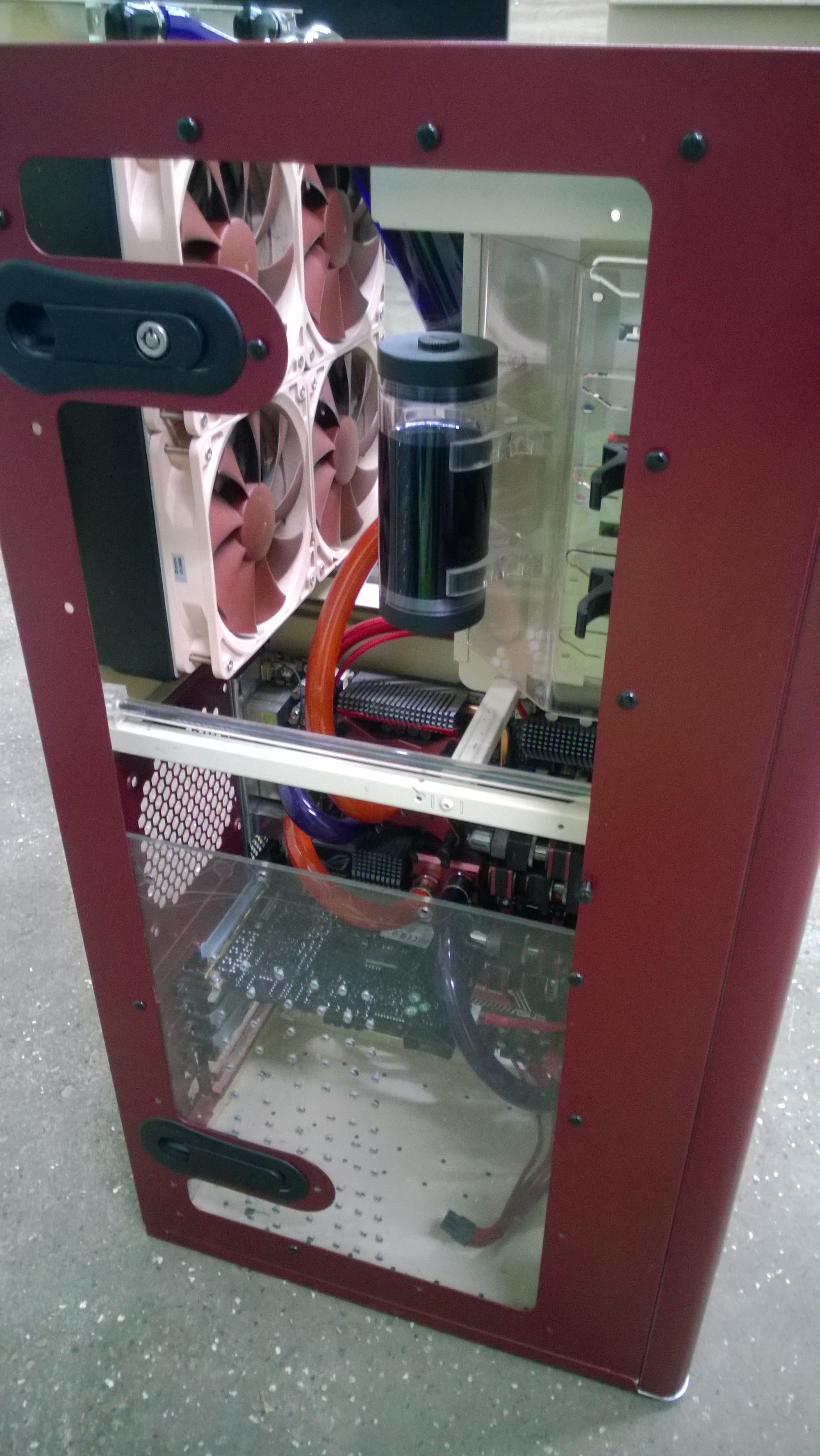 Обычные корпуса с опциональной переделкой/доделкой для внутренней установки радиаторов. Чаще всего выбираются по критерию, радиаторов какой площади позволяют установить внутри без/с разумным количеством доделки/модинга, посему главным образом - большущие full tower. Плюсы/минусы обычных корпусов| Популярные выборы | Приметки (+) при внутренней установки радиаторов общие размеры более компактны; (+) доделывая прямыми руками хороший внешний вид; (-) сильные ограничения по максимальной площади устанавливаемых радиаторов; (-) зачастую нужда доработки (и соответственно инструментов, навыков работы, дополнительных деталей (радгриллей/пылевых фильтров/установочных причиндал и т.д.), часто увеличивающих общие траты до или выше уровня цены идущих следующими специальных корпусов под воду) Популярные выборы: Silverstone TJ07(штатно внизу 4х120(+2x120 если с обеих сторон). Вариант TJ11 с похожей компоновкой имхо хуже, ибо неоправданно дороже. Позволяет похоже установку 4х140 рада); Corsair Obsidian 700/800D(штатно 3х120 на верху, 1х120 с сзади, 1х140 с низу. С минимумом переделок 4х120 на верху.); CM HAF932(Advanced, если с черным нутром. Предпочтительнее HAFX 942ого (у которого меньше места между верхом корпуса и материнской платой. Мало знаком с корпусом, какие/сколько радиков влезают, дополните инфой); CM 692 II(два 2х120, один на верху, другой в низу); CM Cosmos (1000/Pure/S/II)(мало знаком); Silverstone Fortress 02(с разумным количеством доработки 4х140 или 3х180 (если задумано пользование штатных 180мм крутиляторов) радик внизу (правда может лимитировать максимальную длину видеокарт). 1х120 на верху не ставил бы, толку мало от охлаждения его пренагретым от нижнего рада воздухом); +Разные корпуса из больших от Lian-Li и некоторые другие от Corsair & Fractal Design. Приметки к обычным корпусам: При покупке/доделке обычных корпусов желательно иметь инструменты для модинга, как то дремель для выпиления дополнительных вентиляторных отверстий для радов побольше, ну и сверла для установочных винтовых дырок. +Пластиночные или проволочные радгрилли(решётки) для установки поверх вырезанного. Про возможности установки СВО в конкретных корпусах советую смотреть/искать темы в етом и етом форумах или в секции ворклогов на XtremeSystems, и гуглить, гуглить, гуглить, да бы меньше изобретать велосипед.