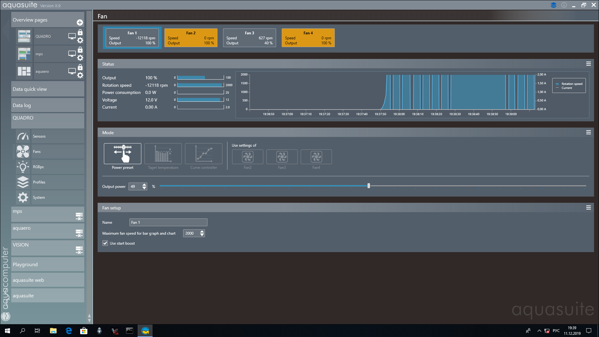 Решил не рисковать материнской платой, подключил помпу к QUADRO, предварительно выставил 49% Картинка "ожила") Обороты в мониторинге скачут хаотично. Фактически не меняются.