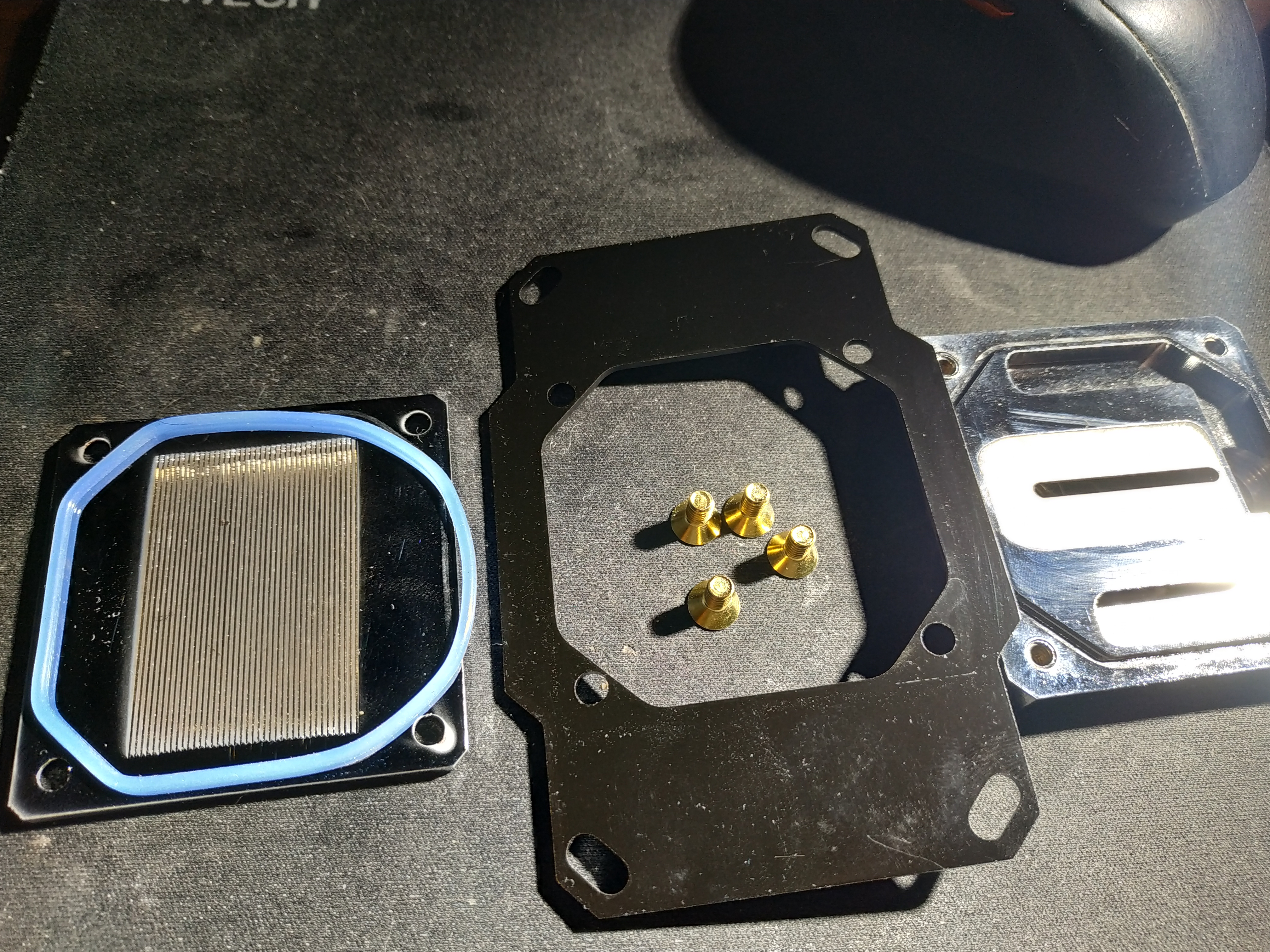 На АМ4 (3900X) собираюсь установить swiftech apogee xt с закреплением только 2 из 4 винтов. Для 1155 сокета диагональные винты идеально попадают в диагональные отверстия АМ4, пробовал закручивать, водоблок, немного перекашивается, но только по оси перпендикулярной плоскости крышки по прежнему с запасом закрывает весь теплораспределитель ЦПУ.