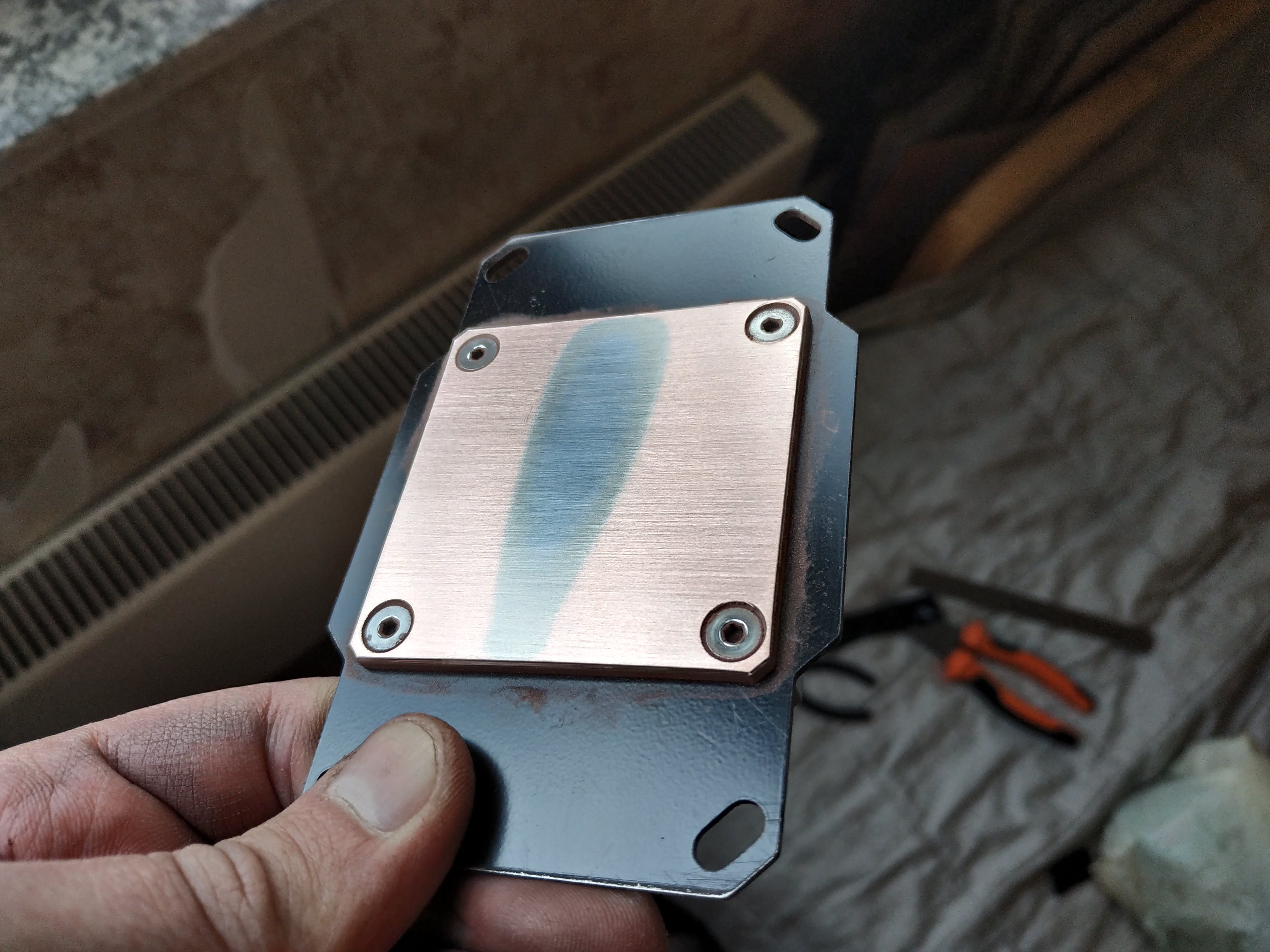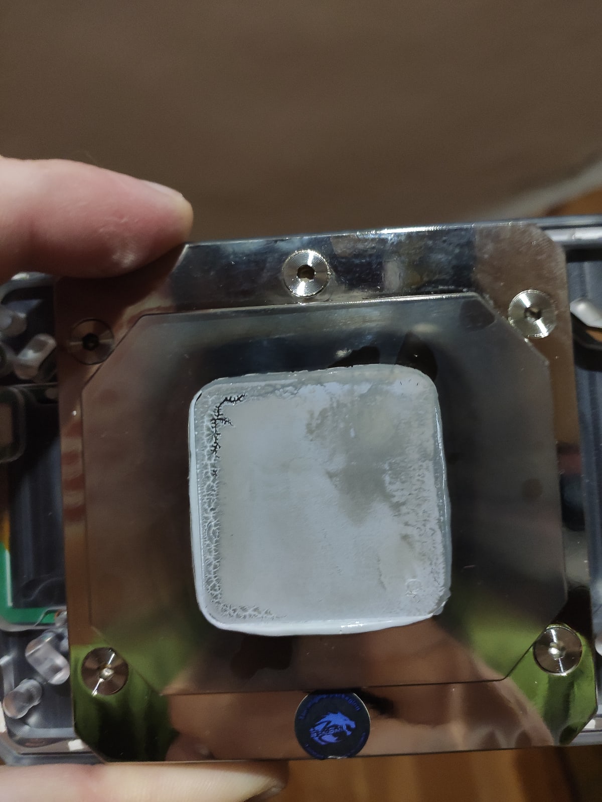 Я думал наоборот, более раздавленная зона в виде цветка это и есть более плотный контакт, а там где отдельные фракции это зона пустоты. По эффективности могу уже сказать что даже в таком виде на 15° лучше старого ватера от АМ3 (70 против 85). Правда, это если проц в стоке (до 140вт в avx), у меня же он был в андервольте -0.15 и отключеным бустом, грубо говоря почти фикс 3.8@1v (~ 90вт в avx). Вот тут уже нет особой разницы. Ок, значит как дойдут руки, займусь шлифовкой