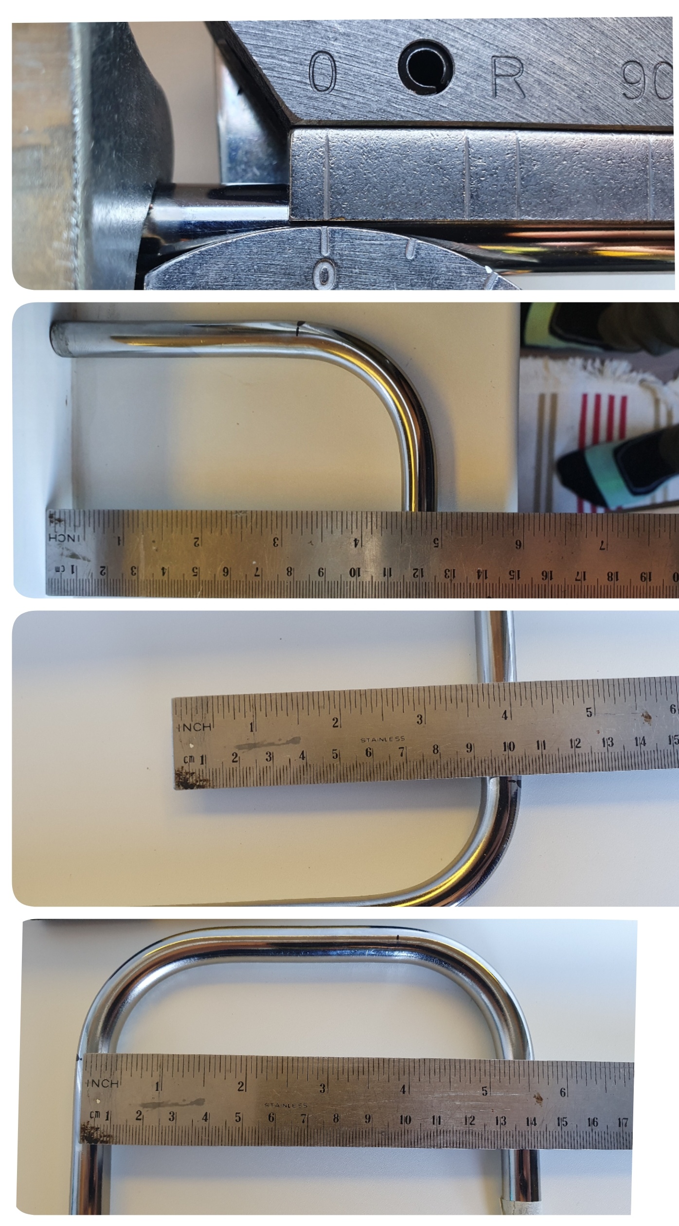 UPDATED Все так. Радиус сгиба у меня 38мм. Допустим нужна мне трубка 118мм + 138 + 118 мм. Я беру трубку с запасом. Отмеряю 118-R сгиба = 80мм. Совмещаю с нулем (при этом 80мм у меня слева от метки) и сгибаю. *Если 80мм справа - совмещать нужно с отметкой R. Т.е. в моем случае можно отмерить 118мм и совместить с R