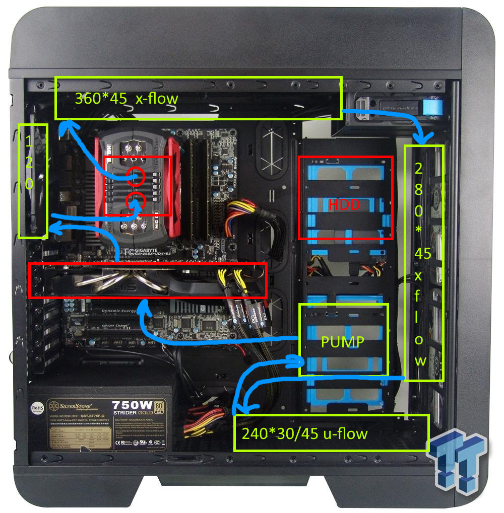 and00 чудовище Франкенштейна будет На самом деле просто крышки боковой не будет, все вертушки на радиках будут на выдув, а на обдув материнки и ХДД применю теперь ненужные 200-ки; так что всё будет достаточно холодным. (А если до меня когда-нибудь дойдут идущие с весны от Ноктуа заменённые по гарантии 200-ки, то и все 4 можно прикрутить. Пускай стоят и пыль нагоняют в корпус). Но я пока думаю, изобразить что-то в Фантексе Про2 или всё-таки распродать всё (потеряв в деньгах) и сделать как на рисунке. Я просто уже боюсь, что в новом корпусе потом опять окажется что-то не так, опять что-то будет не лезть, ибо там везде не хватает сраного миллиметра, всё во что-то упирается. Я просто сильно поспешил, заказав радиаторы под новый корпус. Нужно было разобрать старый и примерить всё в новом, а потом принимать решение.