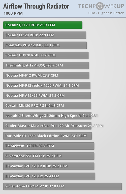Очередное ЛГБТ-творение от пендосов и они об этом говорят как "Other companies, including Thermaltake, have gone about adding even more RGB LEDs per fan since, so it was only a matter of time before CORSAIR decided to do this all over again." --- и это в том числе сделано в ущерб производительности данных карлсонов..: "If you are wondering why the chart for airflow at 750 RPM is missing, it is because the QL120 RGB did not push enough air to hit a confident measurement on my anemometer. That in and of itself says a lot, as does the QL120 RGB occupying the currently worst spot in the other three airflow charts. This is a result of the fan being developed first and foremost with RGB and aesthetics in mind, with the various LED rings resulting in shorter blades that are just not pushing enough air even before the rest of the fan design comes up against airflow restriction from a radiator. It is also quieter than most fans as a result—there are definitely other fans here that offer more if you are looking for a performance-oriented fan."
