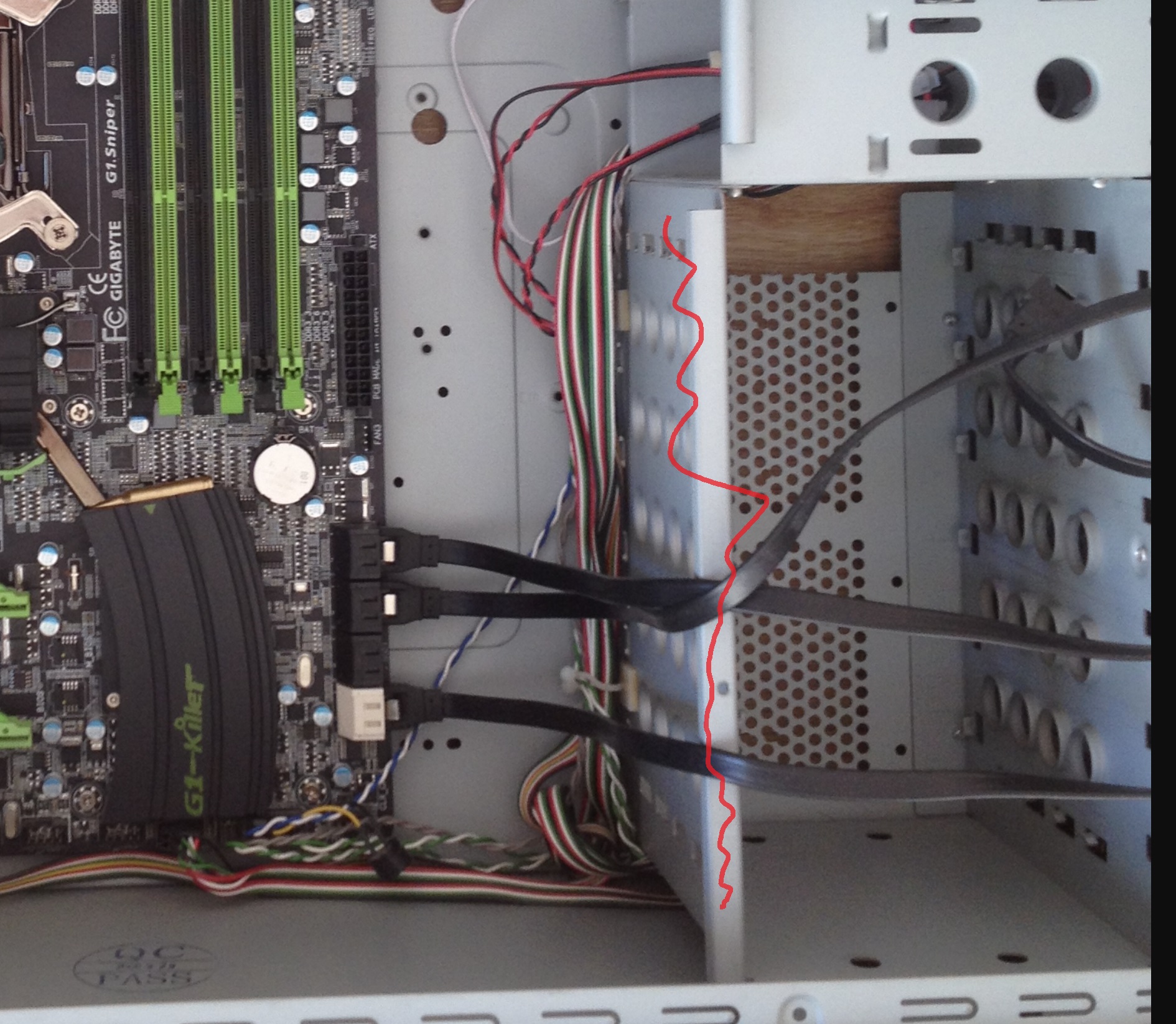 Вижу две 250 на левой стенке, вижу габариты по ширине в 240 мм. Пластина алюминия/фанеры с внутренней стороны с отверстием 2х200, затем фобию 400. Останется сантиметров 15 от рада до платы, вроде лезет видяшка. Я бы промерял.