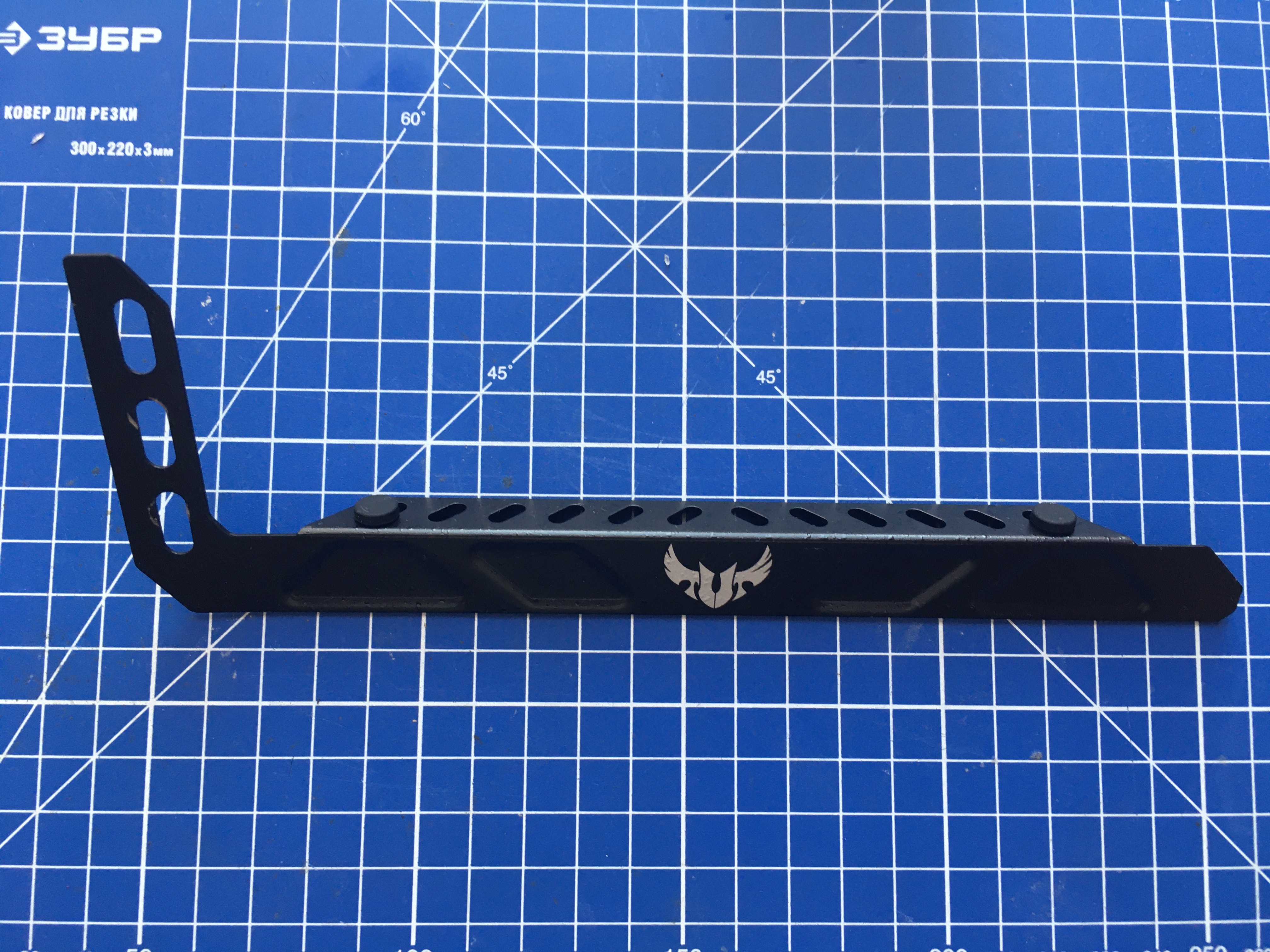 Да, планировал использовать комплектную скобу от МП которая валяется без дела уже года три как, но она оказалась фигней на деле, поэтому собрал на скорую руку свою из того что на глаза попалось, а именно: 2-е мебельные ножки от IKEA, обрезок кухонного рейлинга, магнит и подложка под ножки на войлочной основе. Высота 110-130мм