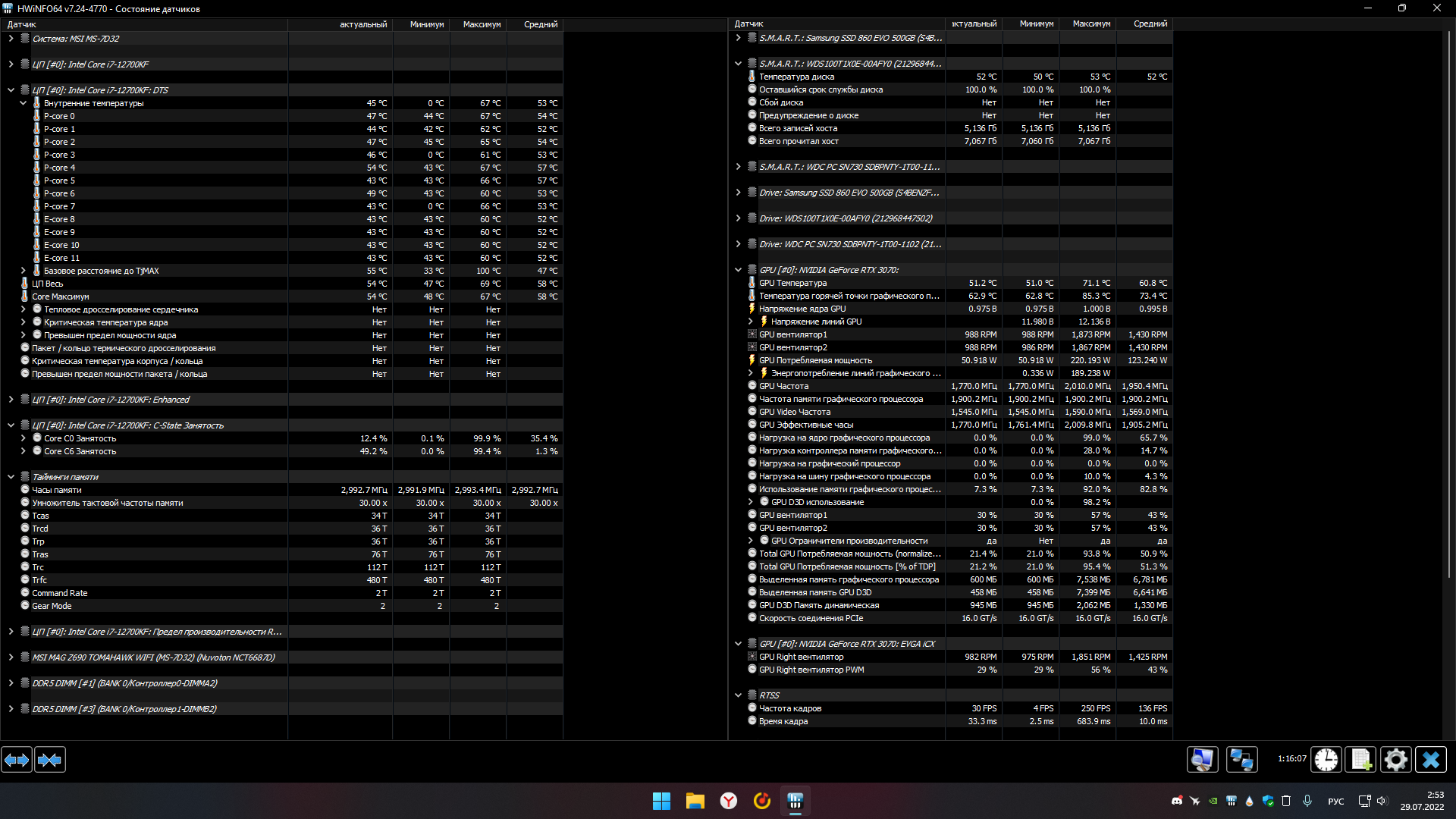 Получила рамку крепления процессора к мат плате на сокет lga1700. Термопаста комплектная от воды EK-tim Ectotherm, кто то писал что термалгризли внутри, однако я сильно сомневаюсь. Установила - минус 4-5 градусов в той же аида. Получается, что смена башни на воду, костыли в виде рамки на мать дали грубо говоря минус 20 градусов.
