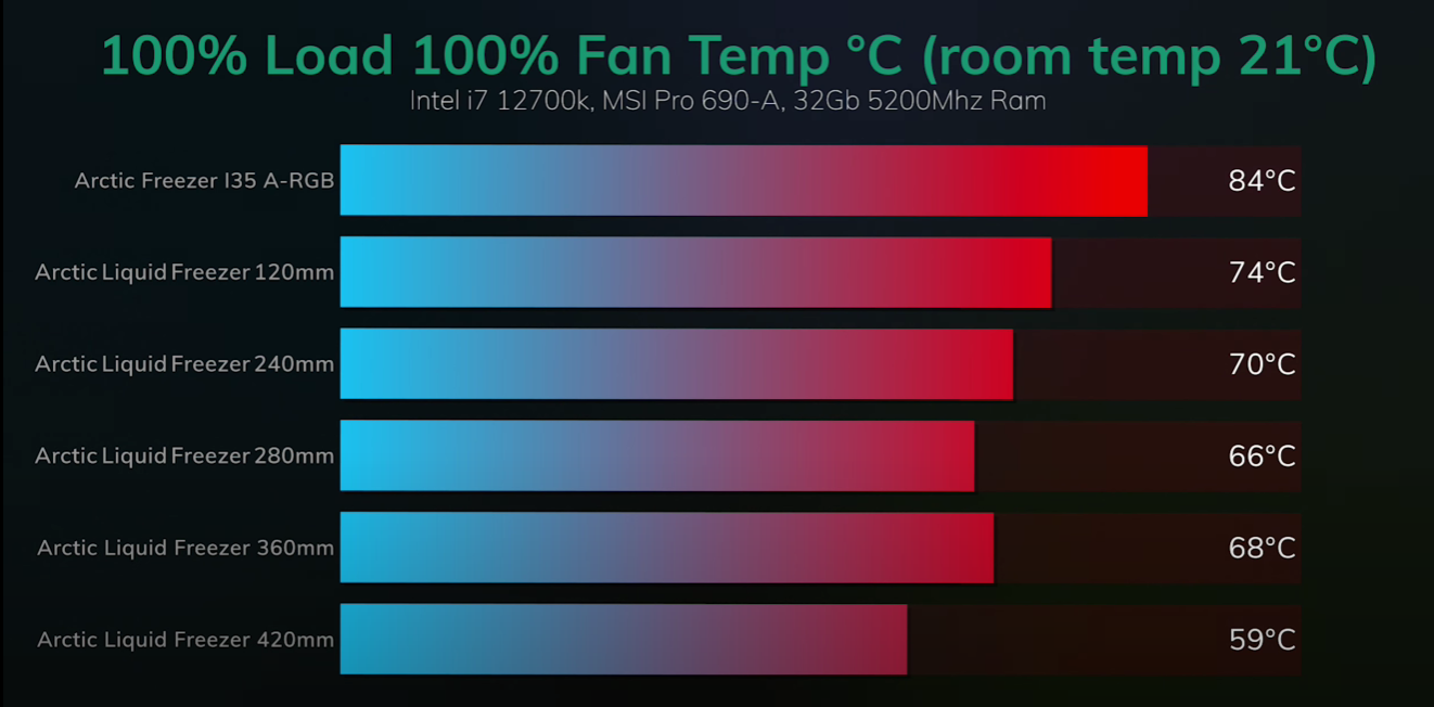 Так есть сейчас что-то из AIO эффективней Arctic liquid freezer ii 420 + 6х P14? Хотя бы градуса на 4, для платформы на 12900К который бьётся в 310Вт?